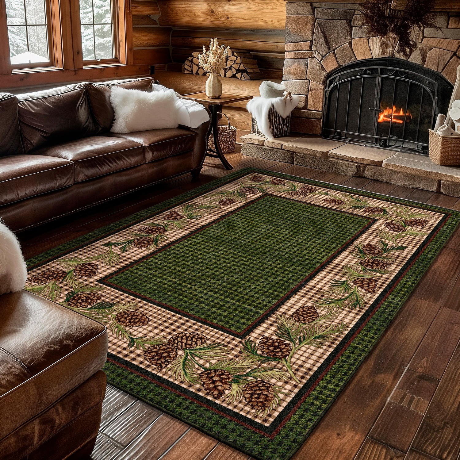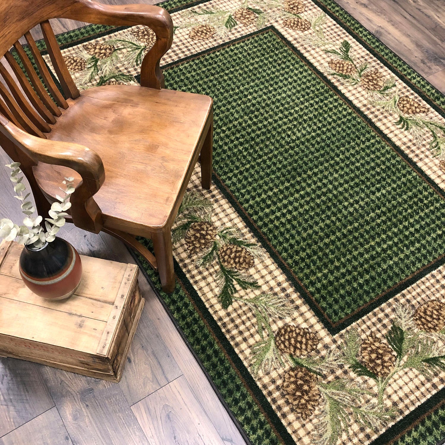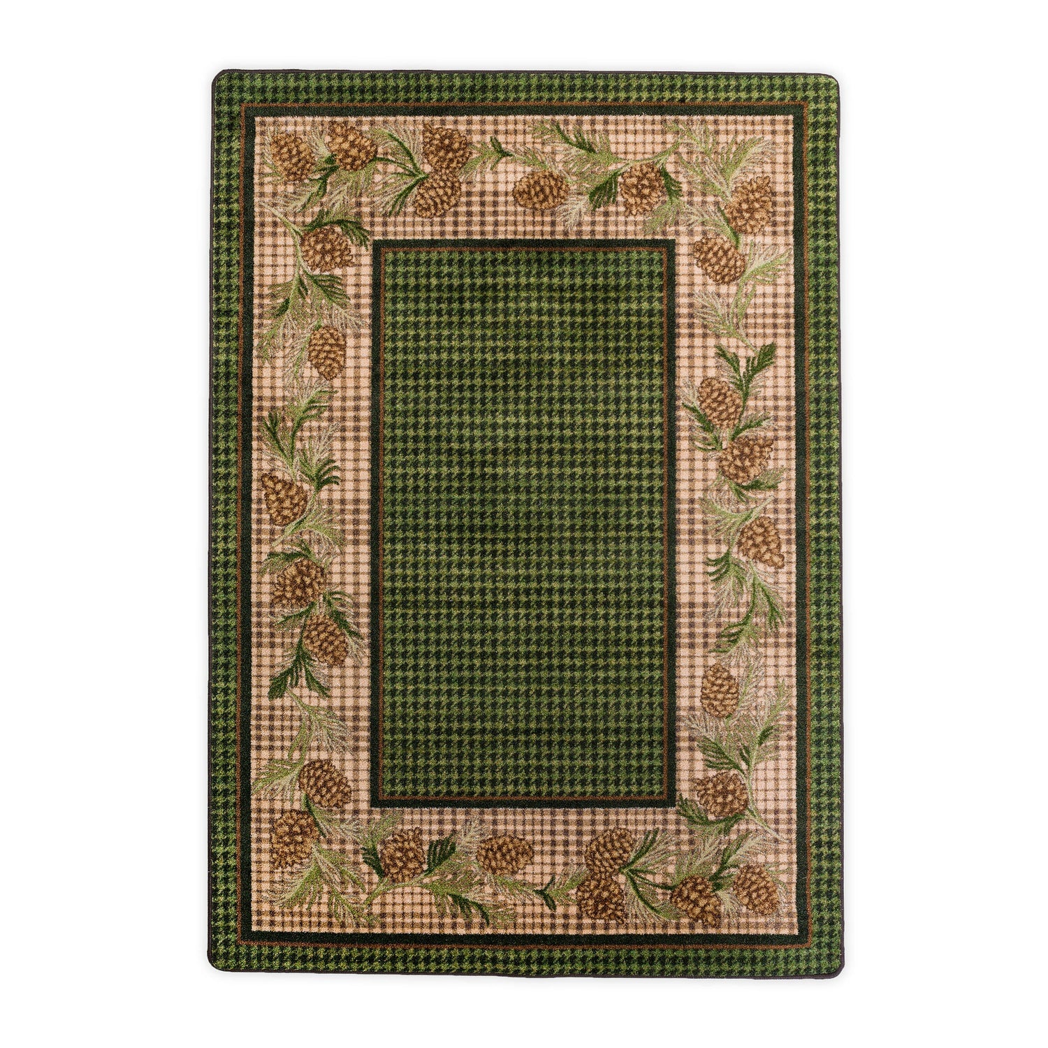Featuring stately pine cones and subtle texture, this rug transforms any room into a rustic retreat. Rich, earthy tones and an eye-catching design bring style to any space, from family room to bedroom, mudroom and more.