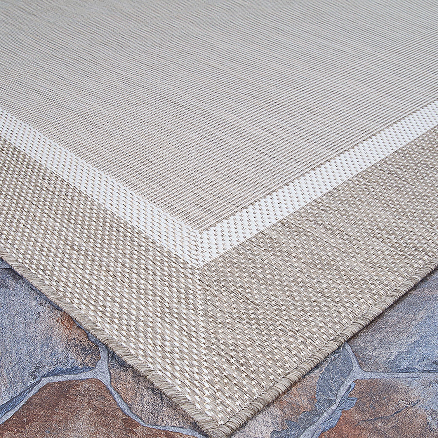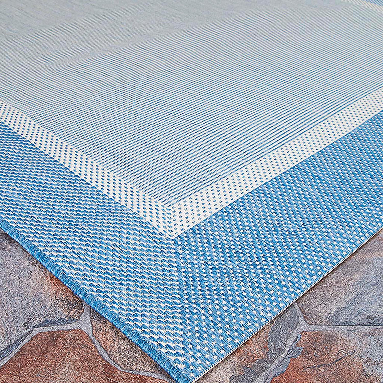 This all-weather, pet-friendly area rug is power-loomed of 100% fiber-enhanced Courtron™ polypropylene, UV-stabilized, and mold, mildew and stain resistant. Flatwoven construction produces a low ⅛" pile that clears most inside and outside doors.