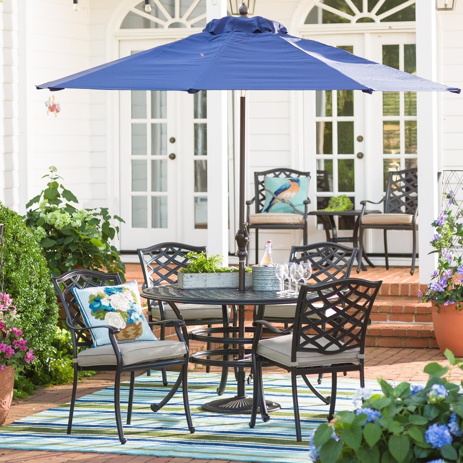The table features a 2" dia. umbrella hole and comfortably seats four with room to spare.