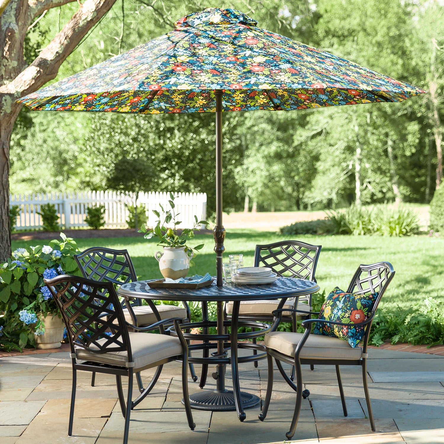 Park Grove Cast Aluminum Outdoor 5-Piece Dining Set with Cushions