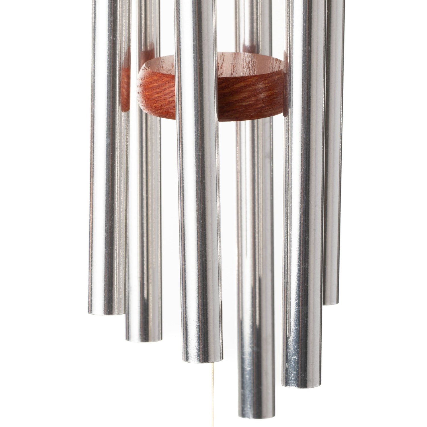 Choose from three sizes - the larger the wind chimes, the lower the tones. Crafted of weather-resistant aluminum and bamboo.