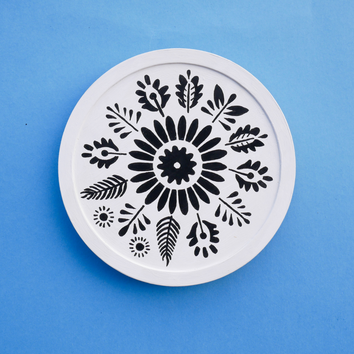 This craft kit includes a bamboo turntable, six stencils, and all the painting materials you could need. To protect your masterpiece, we've provided a durable matte varnish that ensures long-lasting beauty. Crafters will need a water cup and tape.