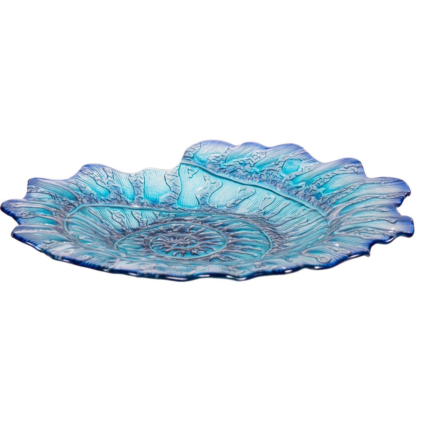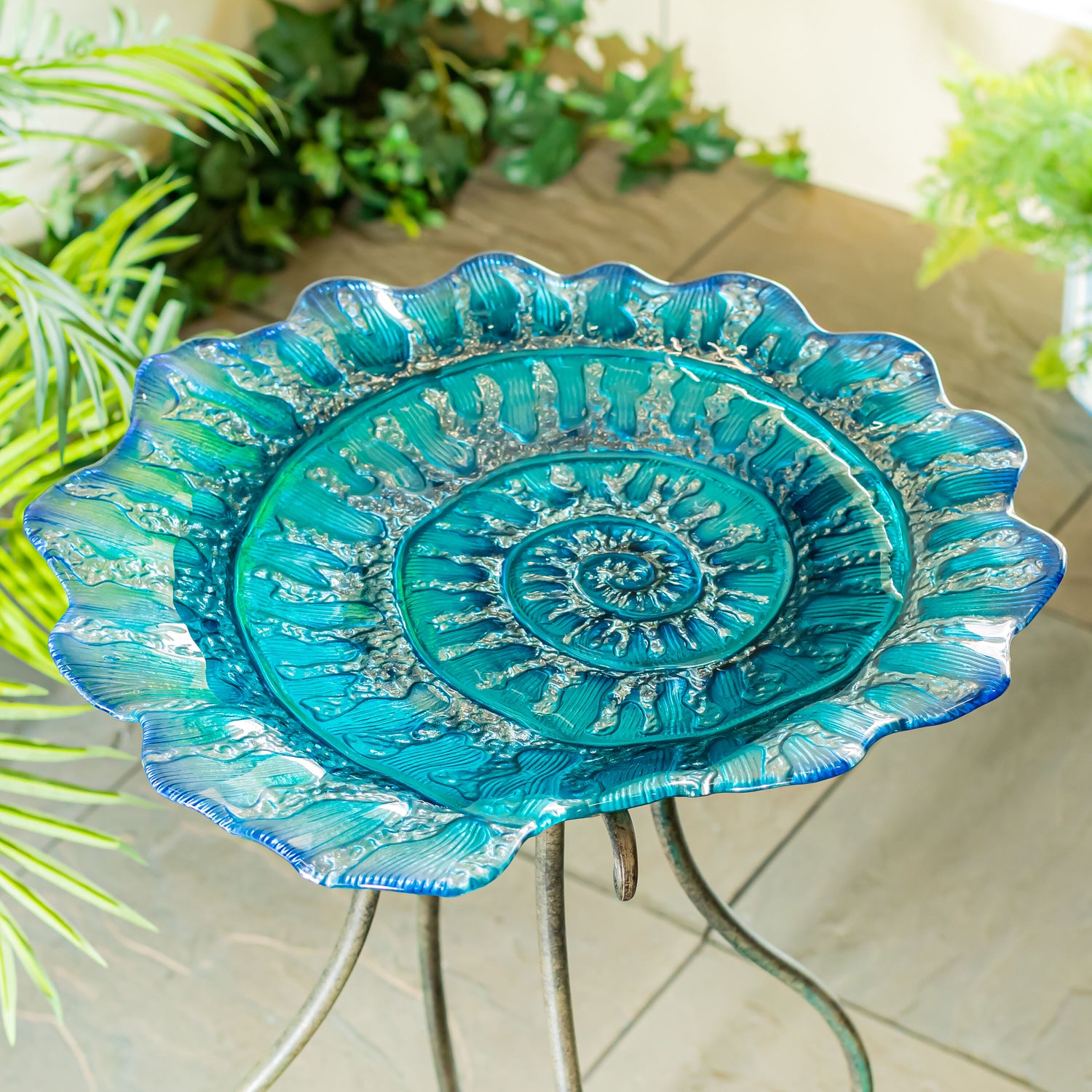 Blue Coastal Birdbath, Shell Glass Birdbath, 18"