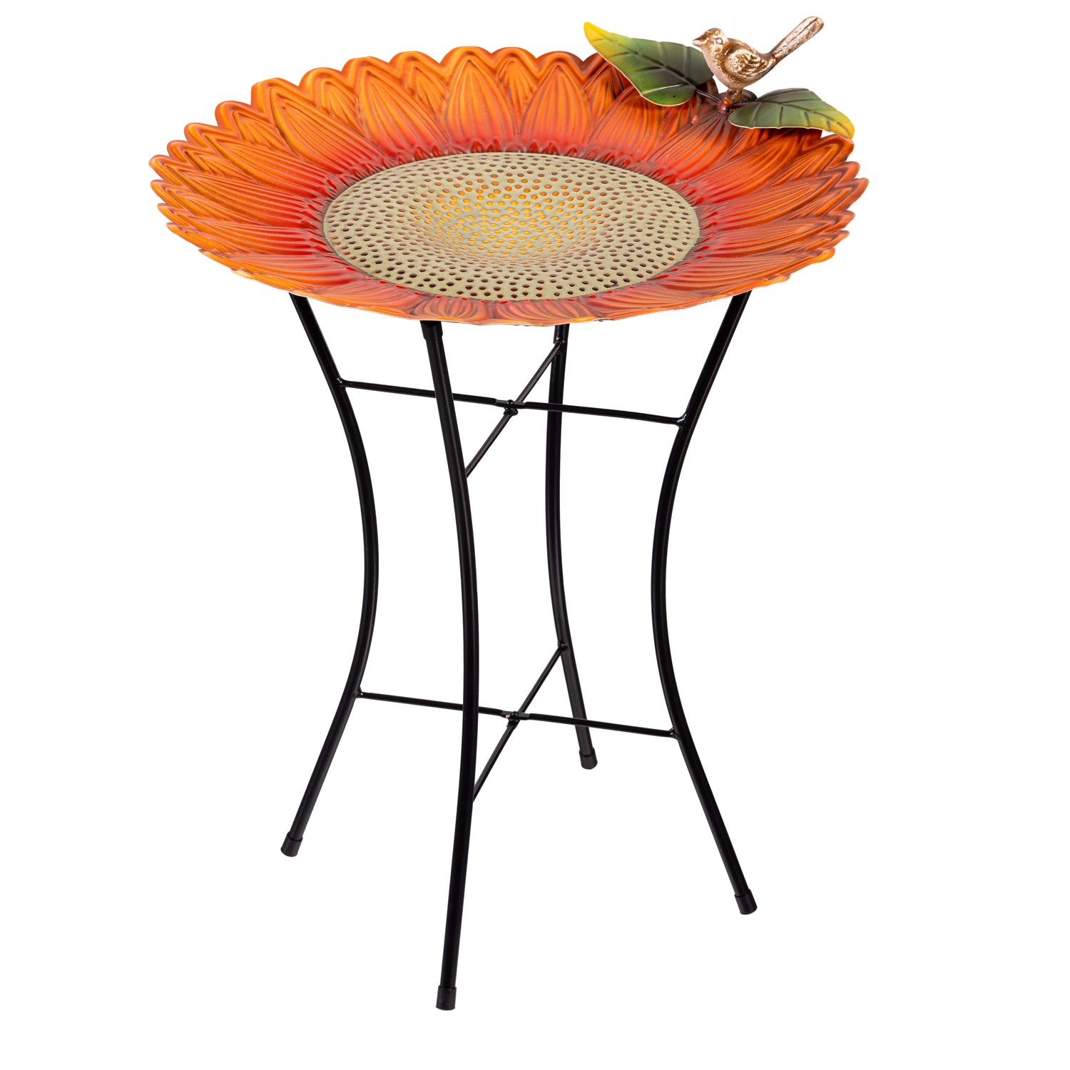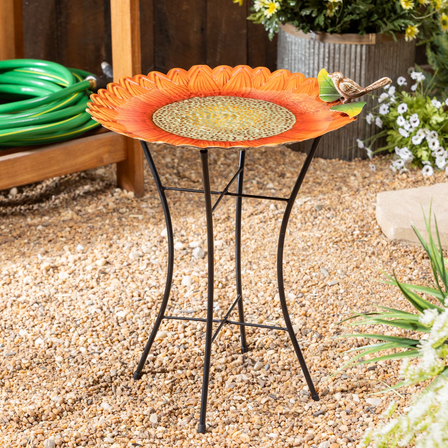 Petal & Plow Birdbath, Metal Sunflower Birdbath with Stand