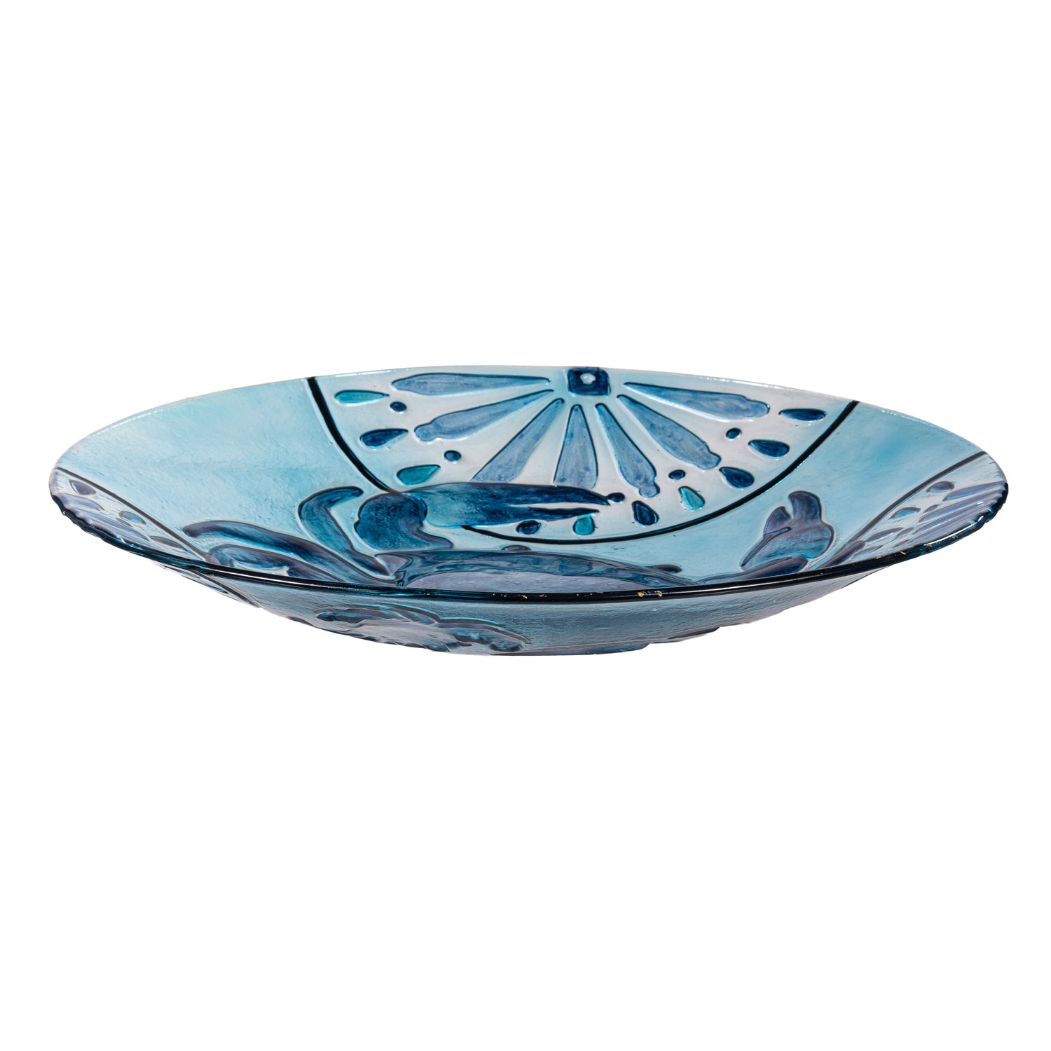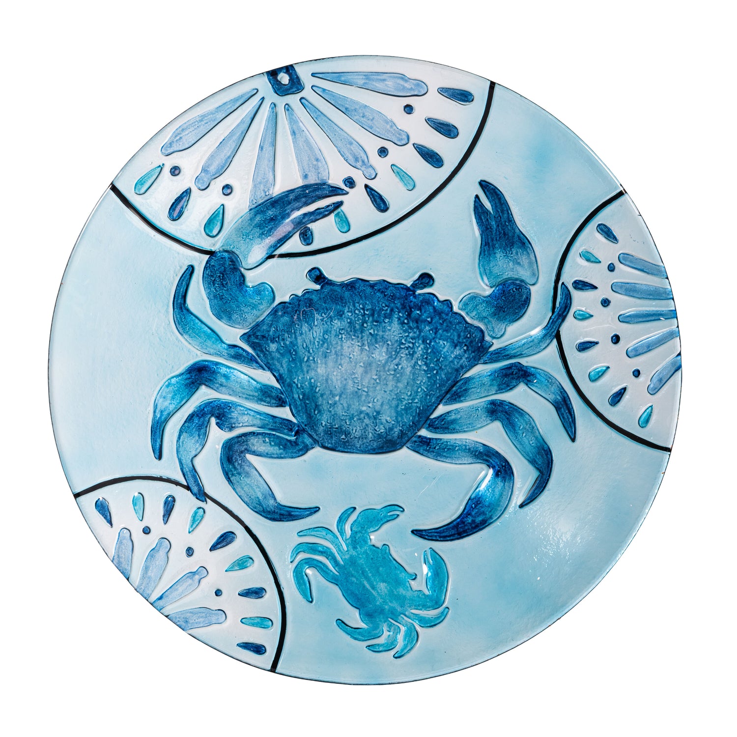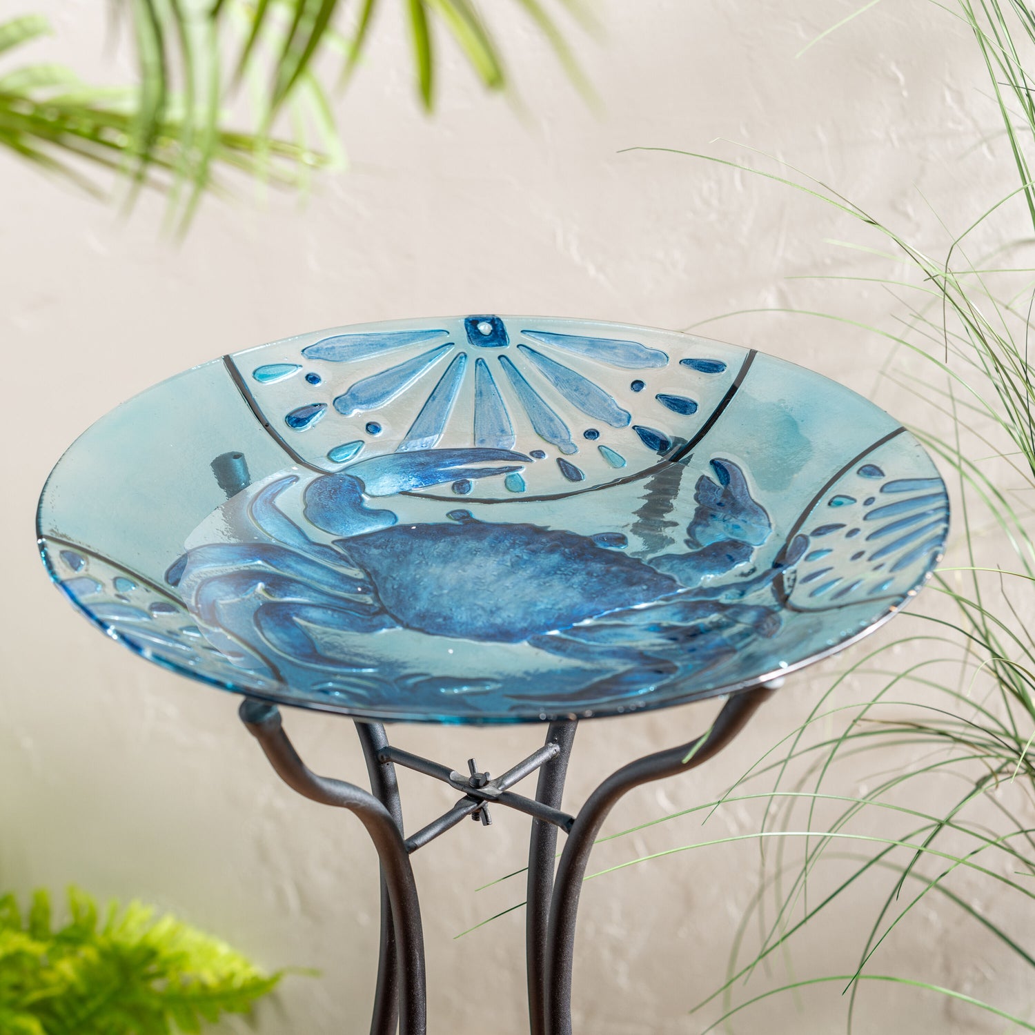 Blue Coastal Birdbath. Blue Crab Glass Birdbath, 18"