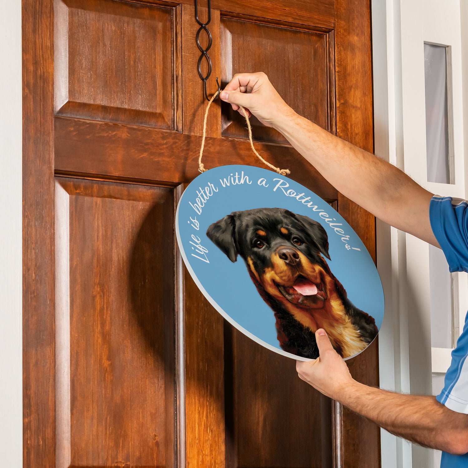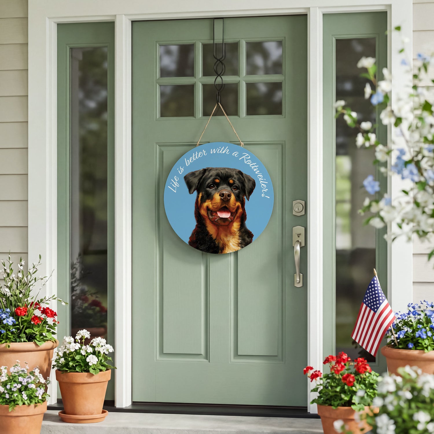 Pet Central Dog Wood Round Door Décor, Rottweiler, 18"