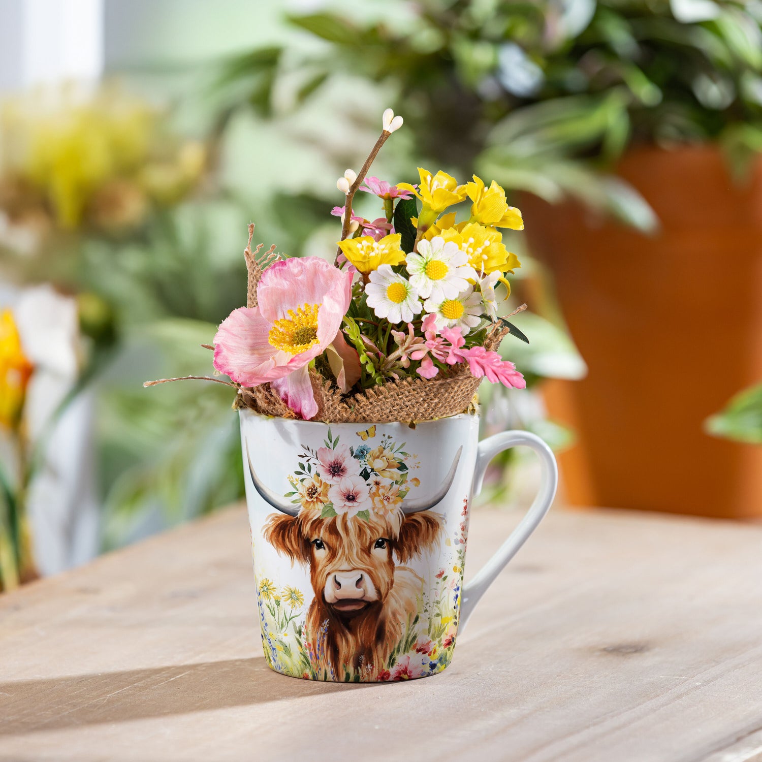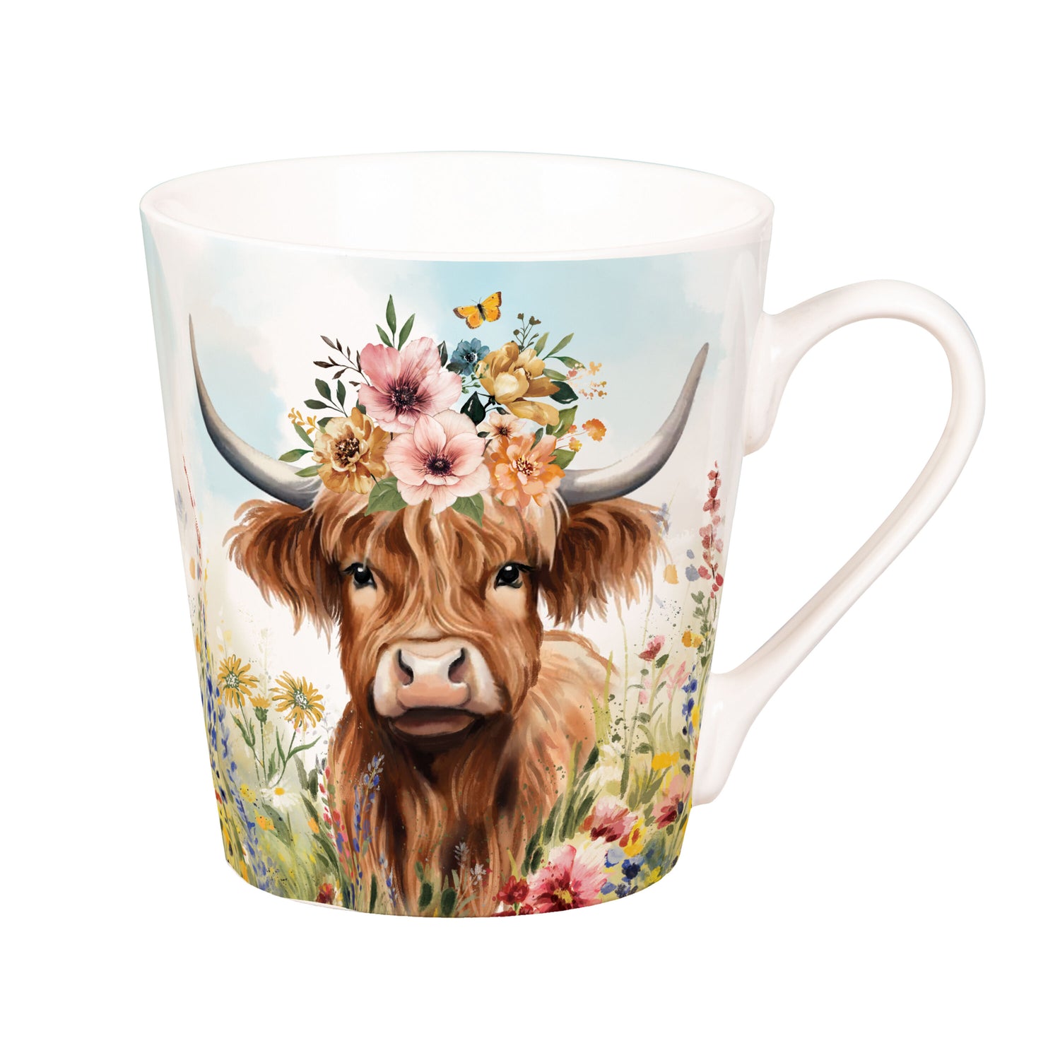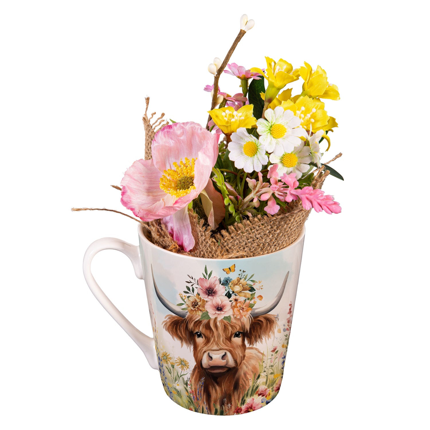Petal & Plow Drinkware Gift Set Ceramic Flare Cup and Decor, Farm Highland Cow, 12oz, Gift Box