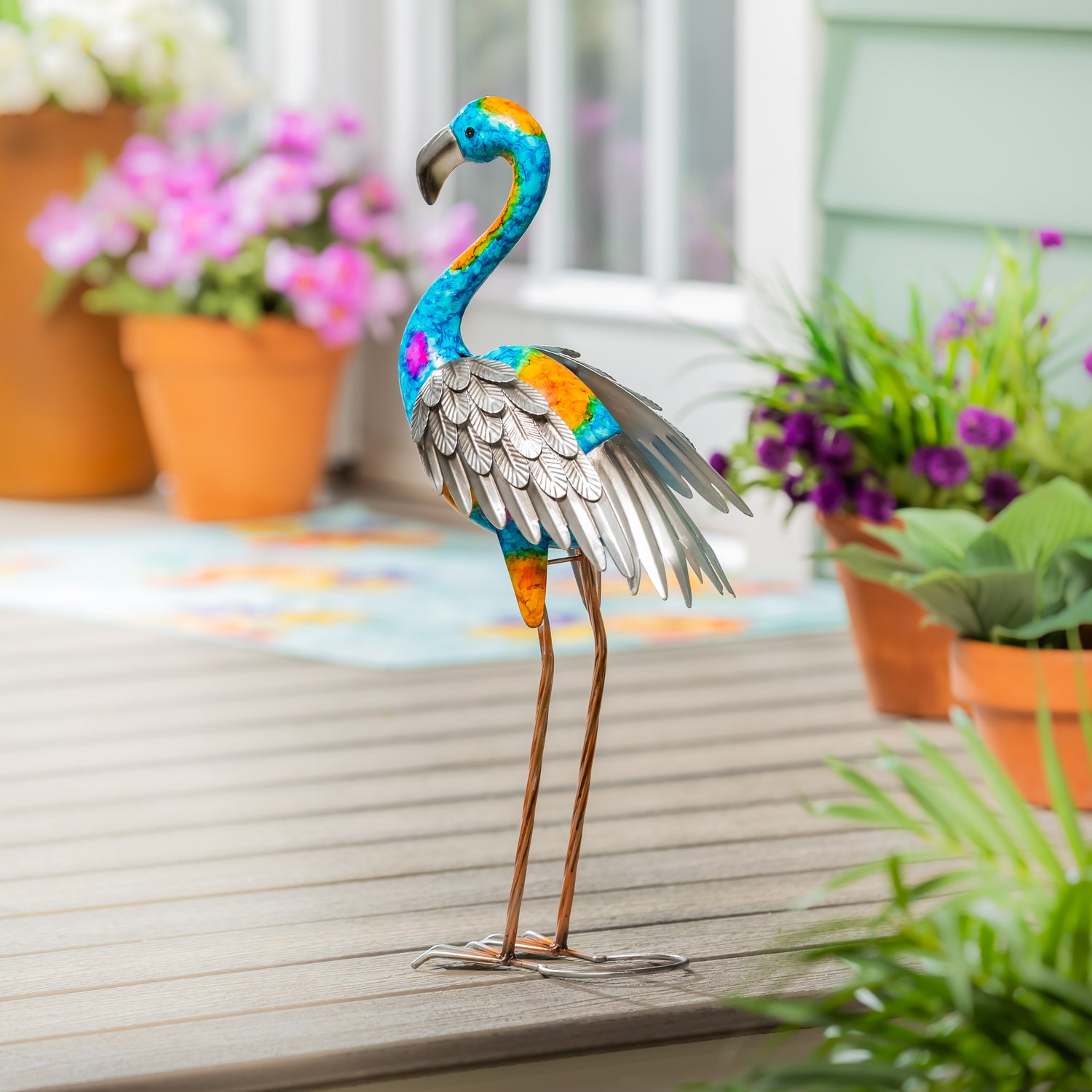 Metal Gradient Flamingo Garden Statue, 21.5"H