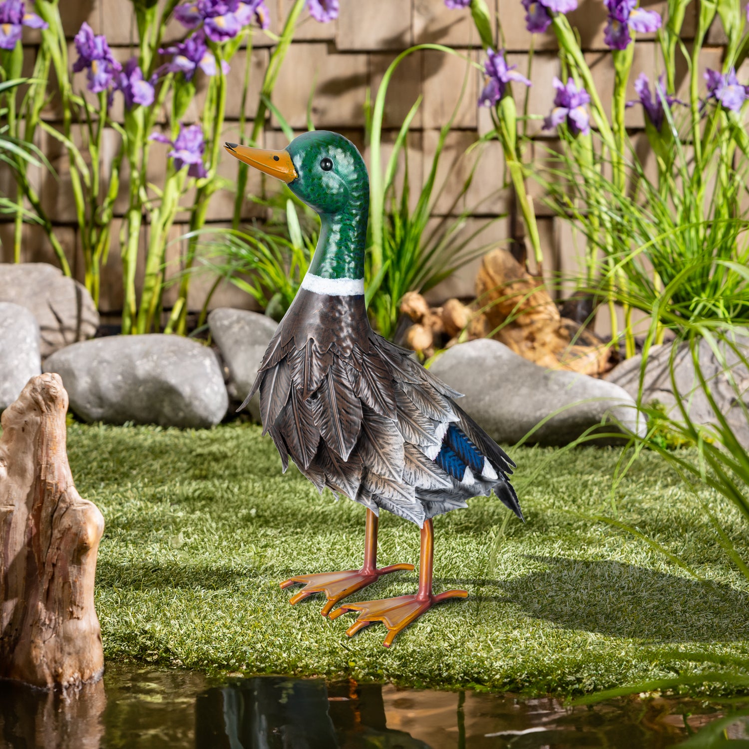 Metal Mallard Duck Garden Statue, Looking Up Pose. 16"H