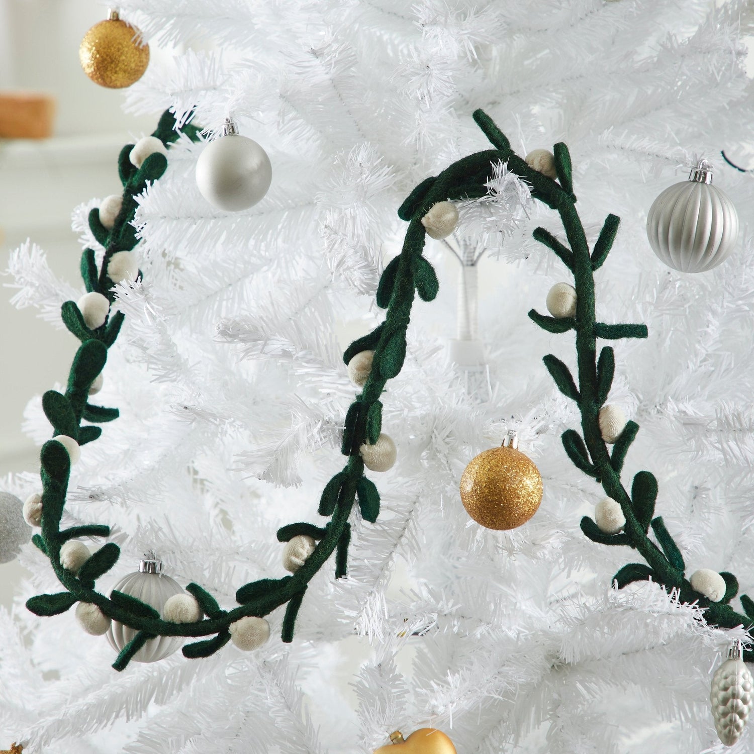 Handmade Christmas Garland and Bunting - Cream Velvet Balls and Felt Mistletoe - 6' Arcadia Home