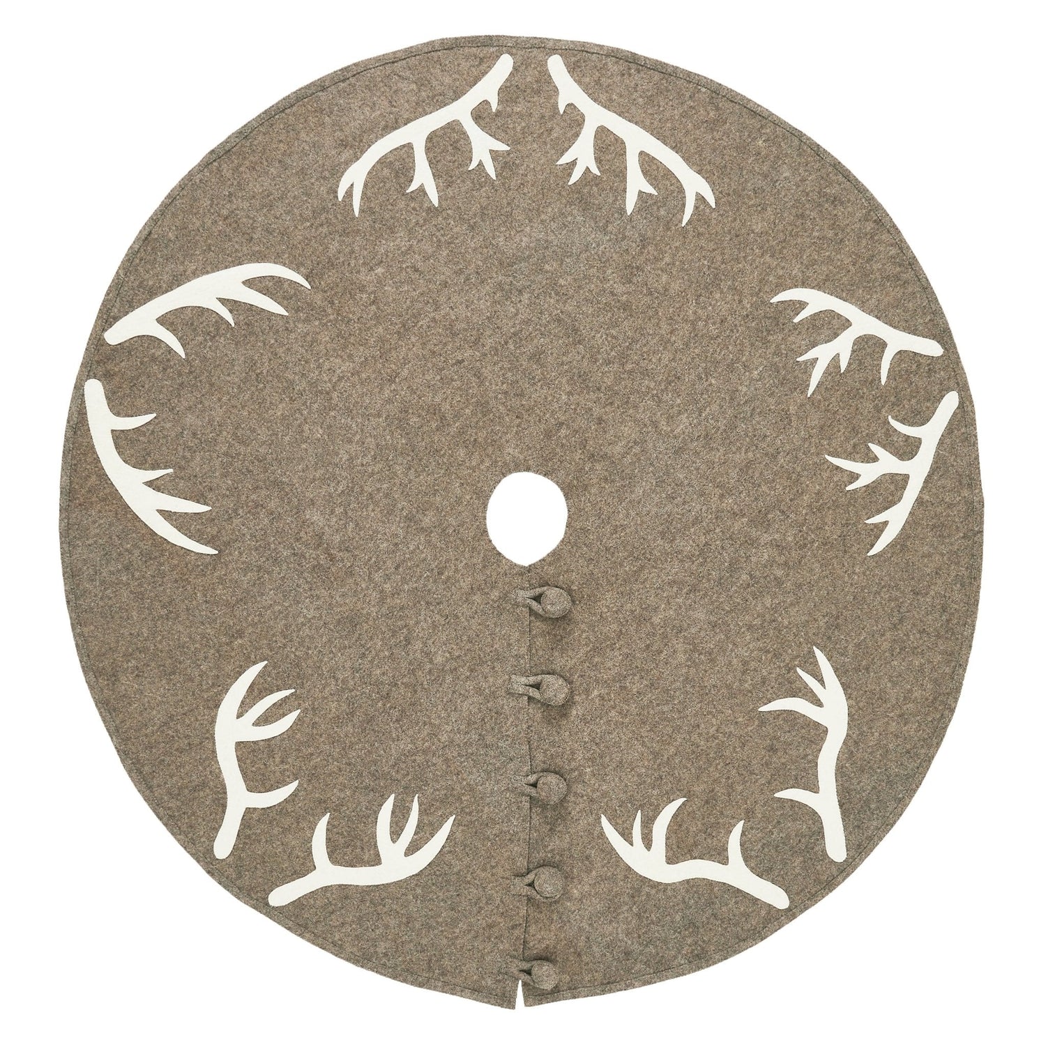 Handmade Felt Antlers Gray Christmas Tree Skirt 60" / 72" Arcadia Home