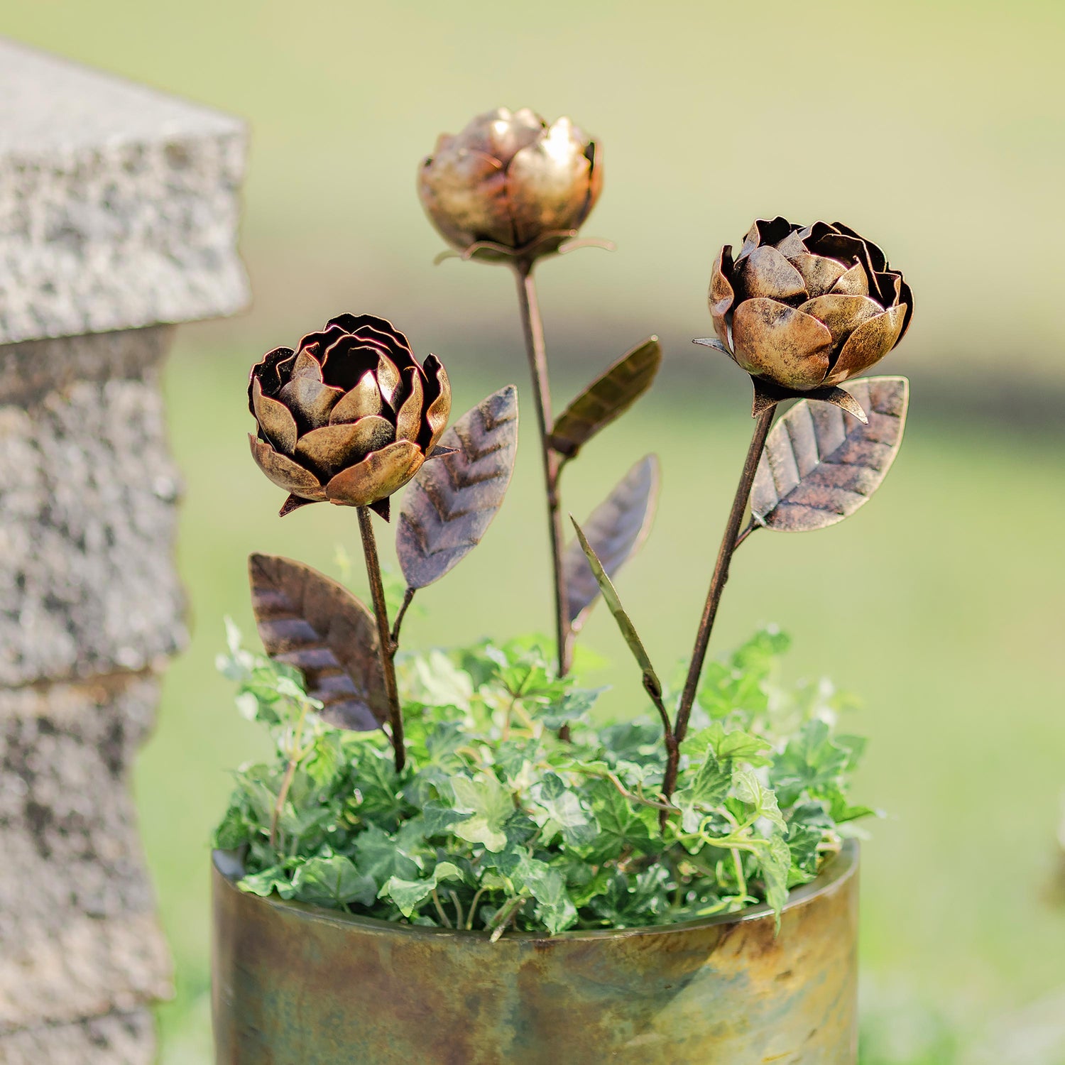 - Metal Rose Garden Stakes with Copper-Gold Finish