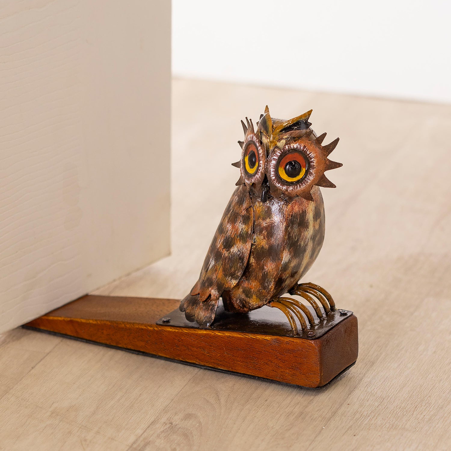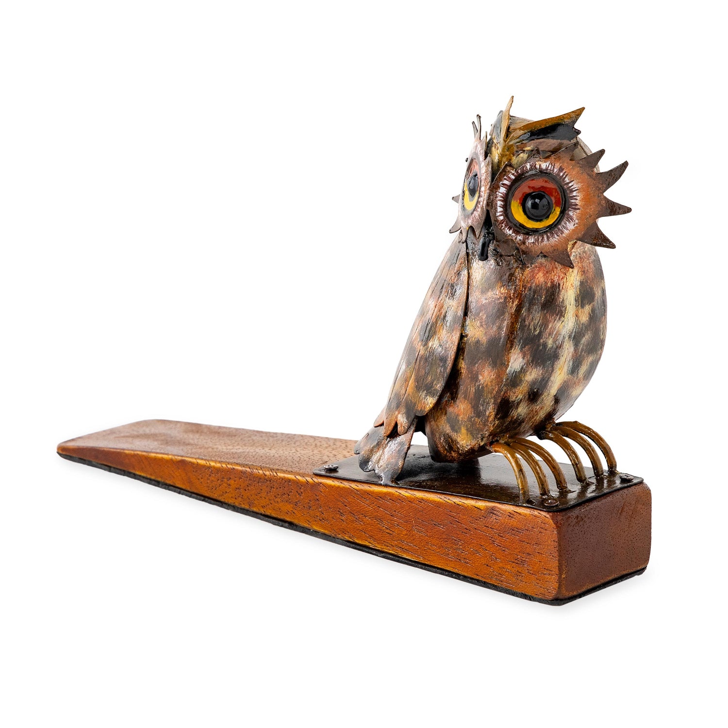 This unique door stopper comes firmly attached to a sturdy wooden base that is strong enough to prop open even heavy doors. Also makes a fun gift for owl lovers. Wind & Weather Exclusive design.