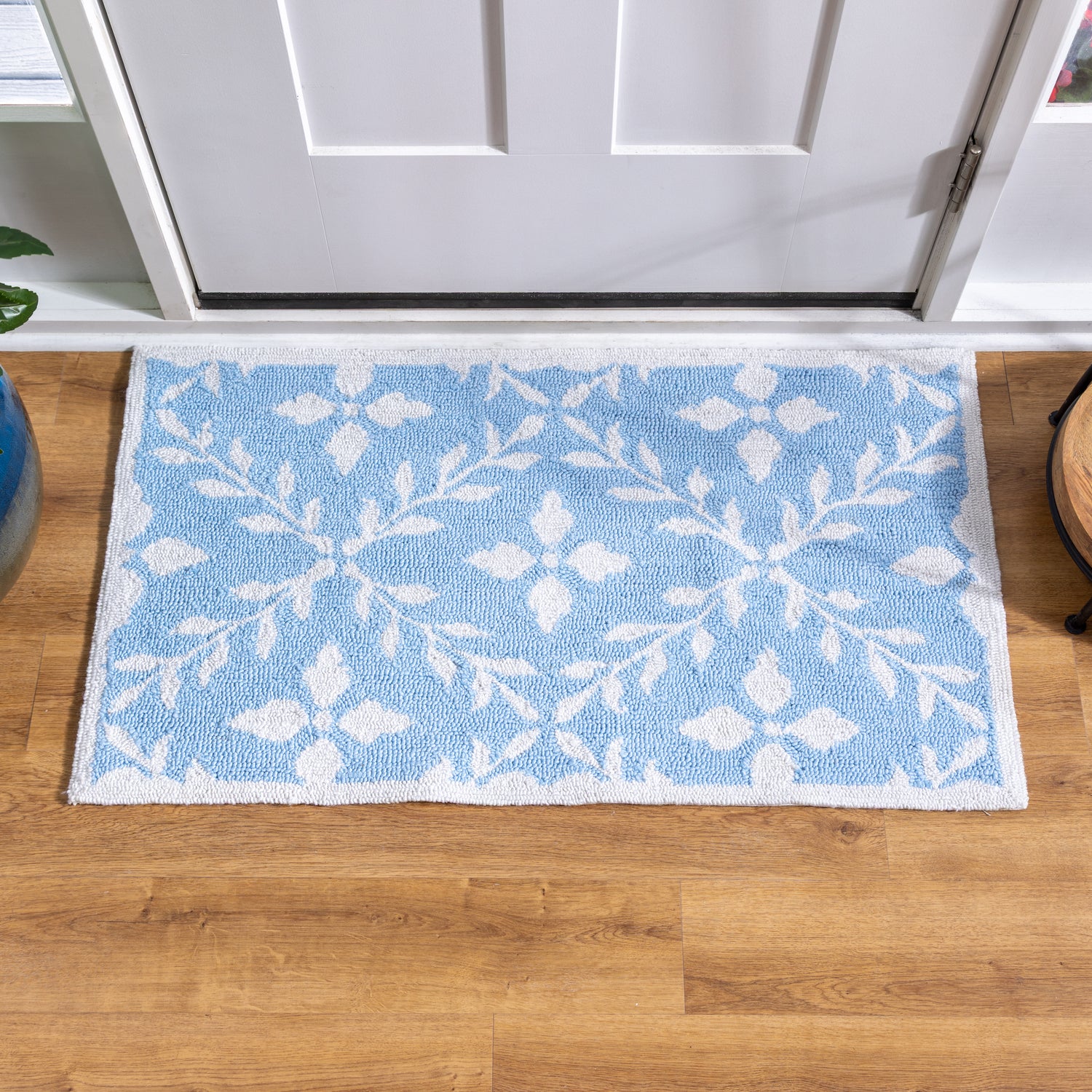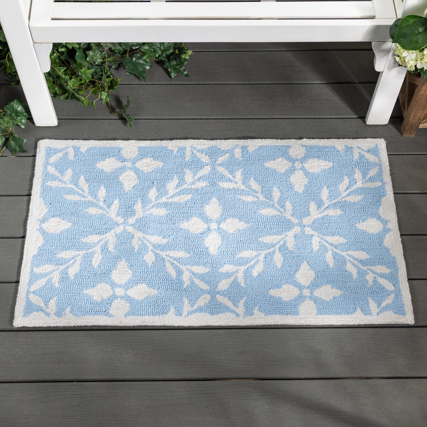 Light Blue Diamonds Indoor/Outdoor Hooked Rug 24"x42"