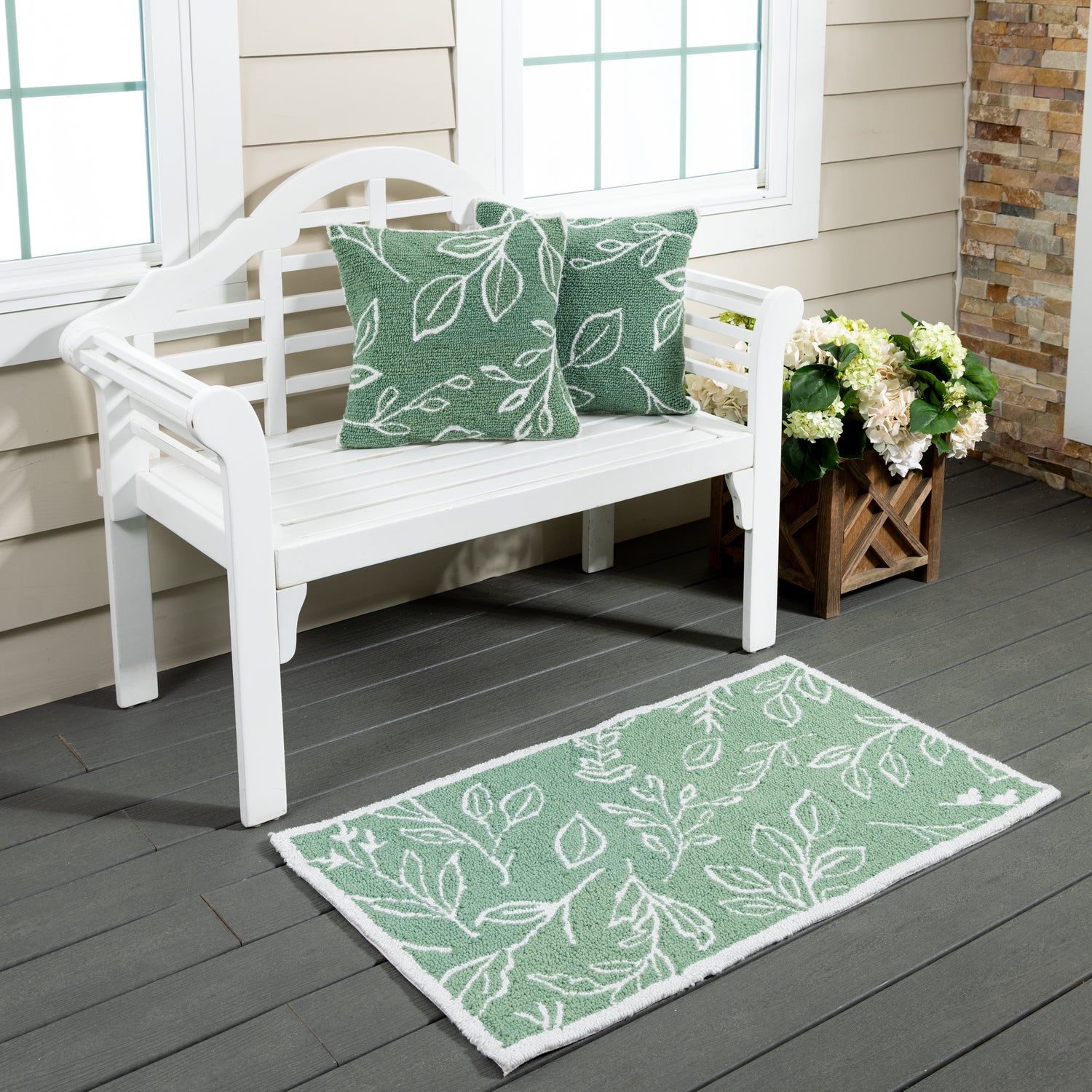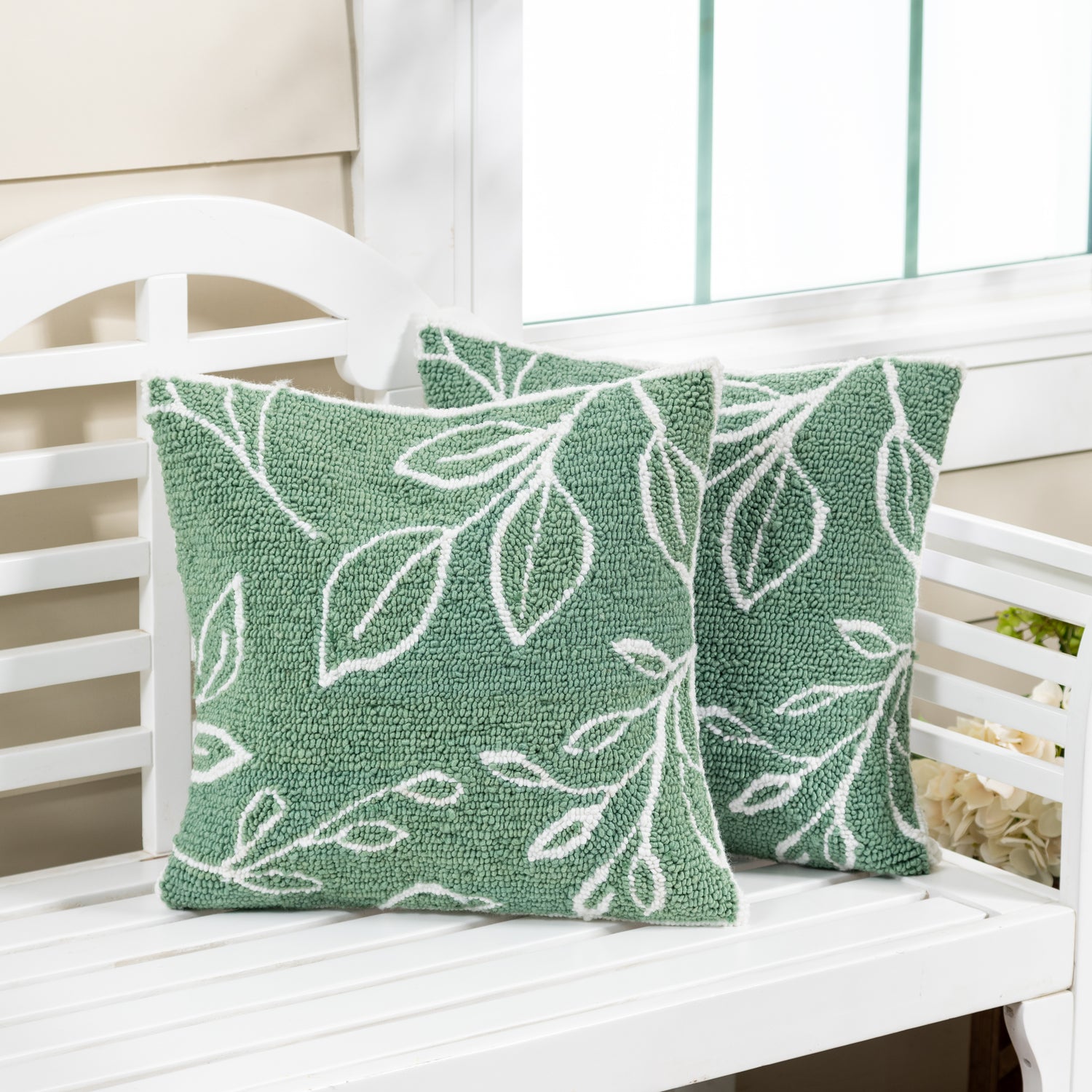 Verdant Greenery Indoor/Outdoor Hooked Pillow 18"x18"