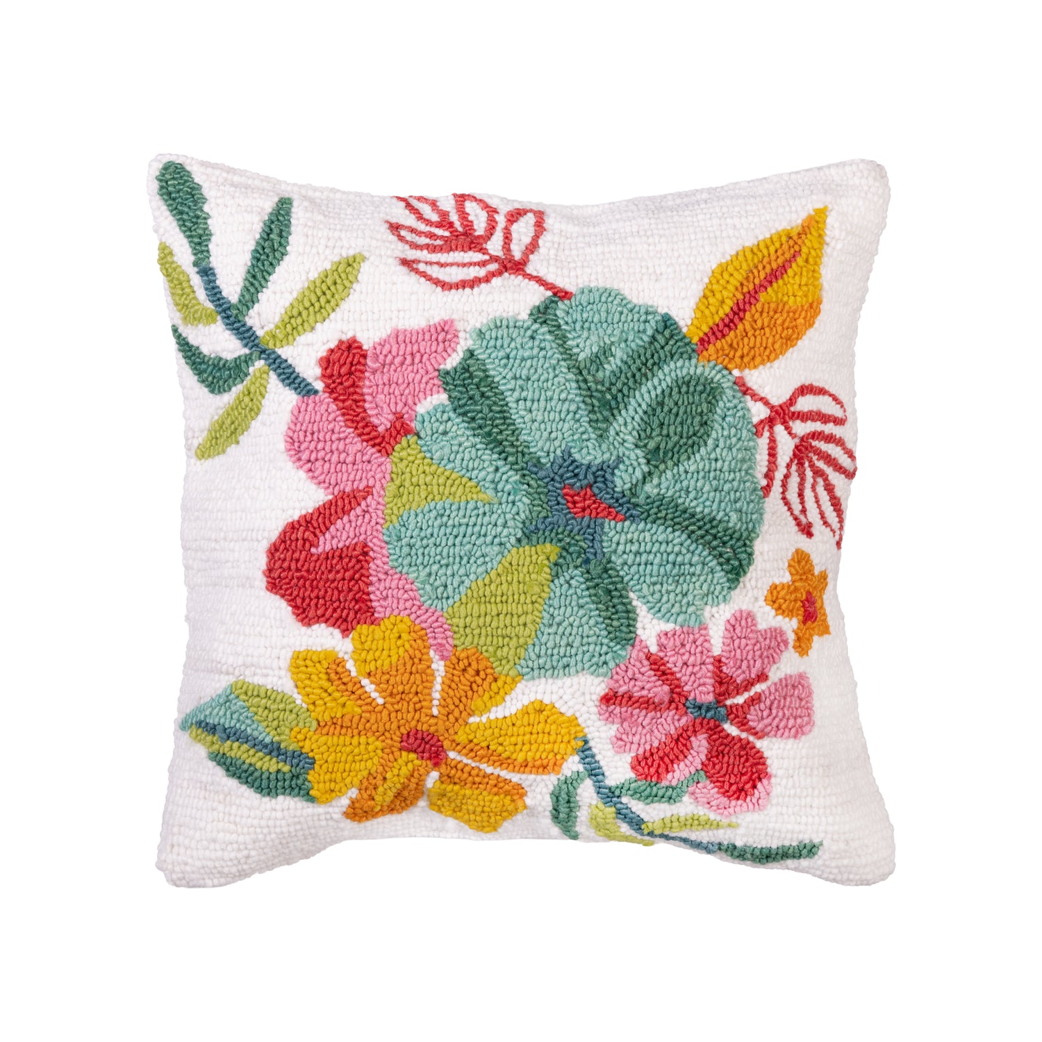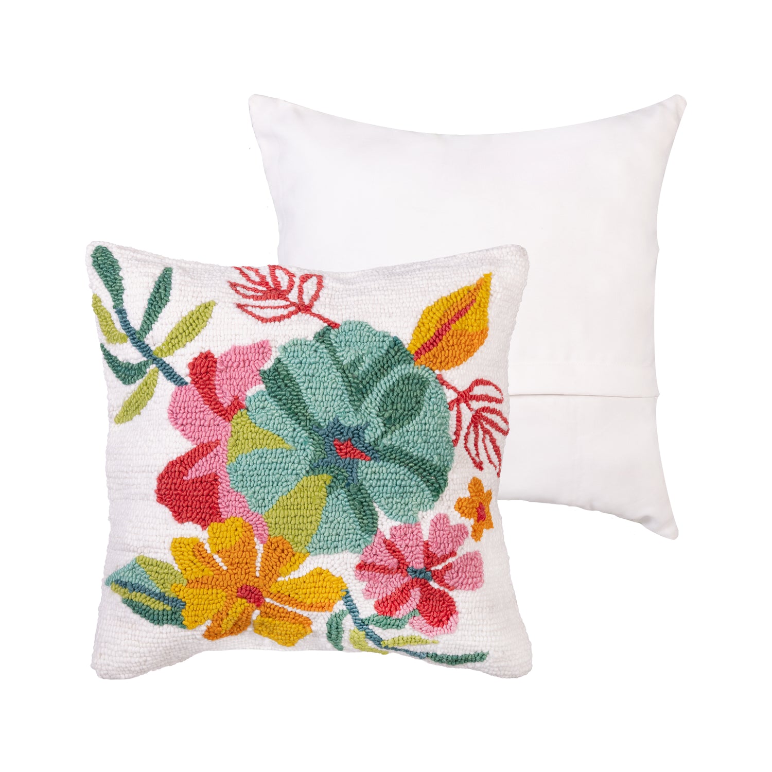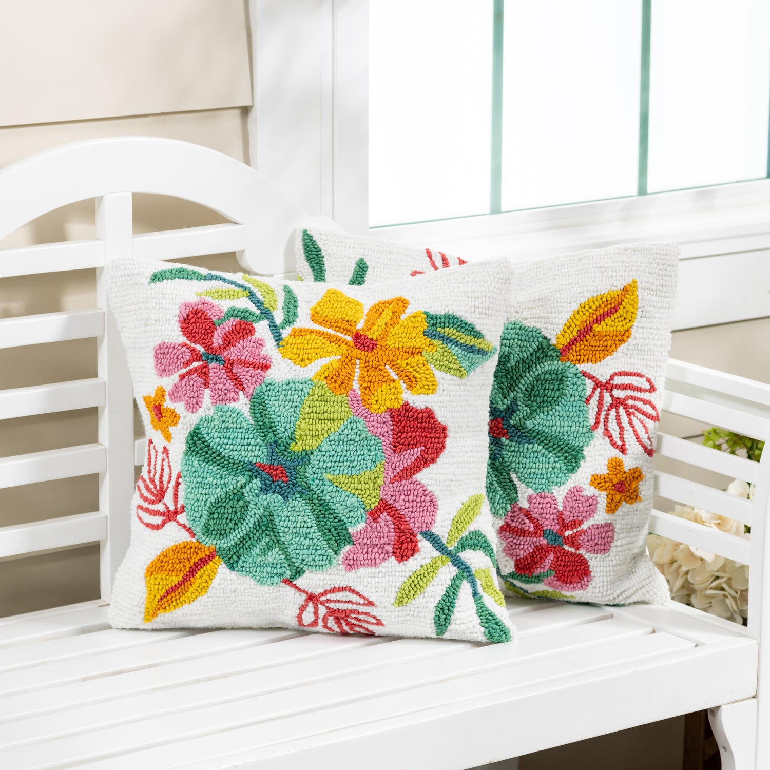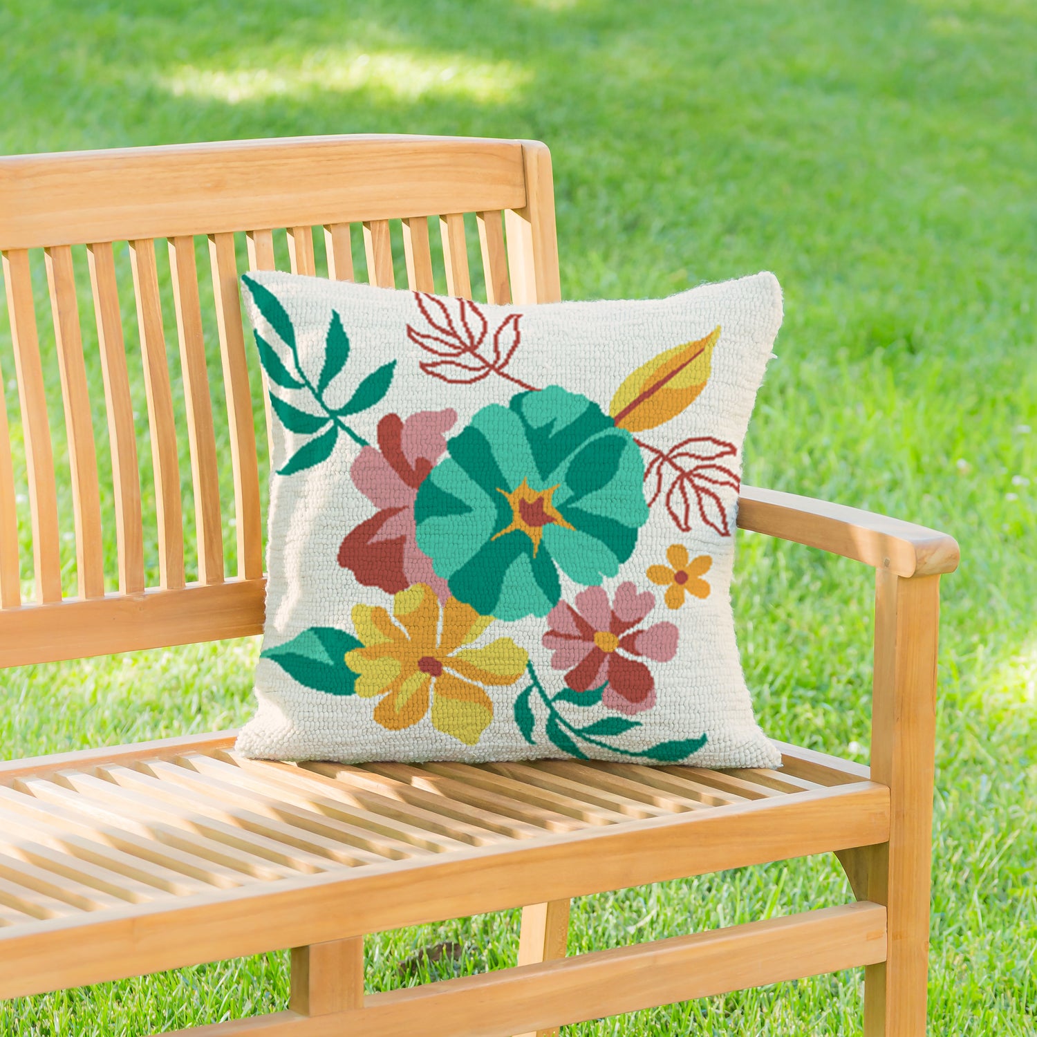 Vibrant Flowers Indoor/Outdoor Hooked Pillow 18"x18"