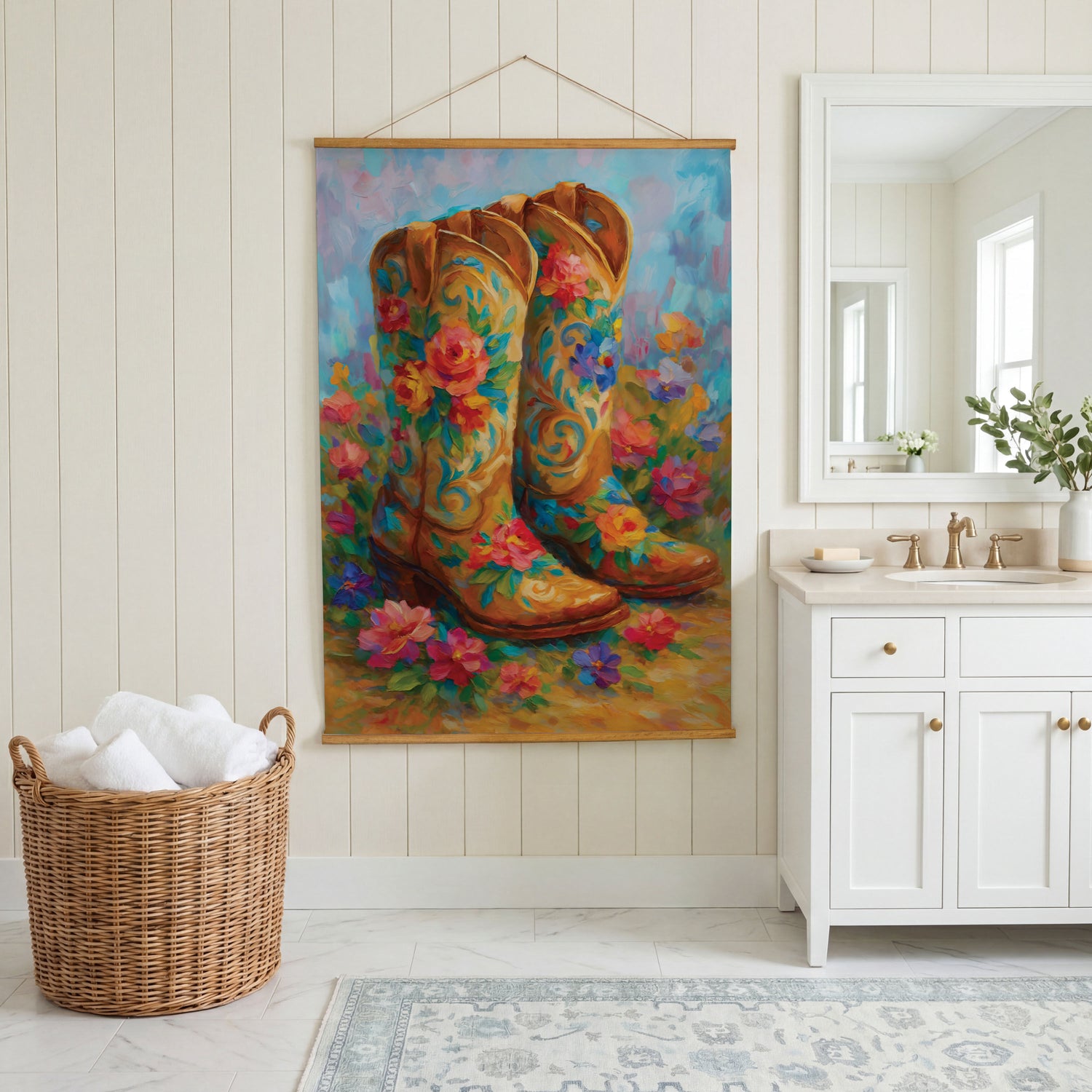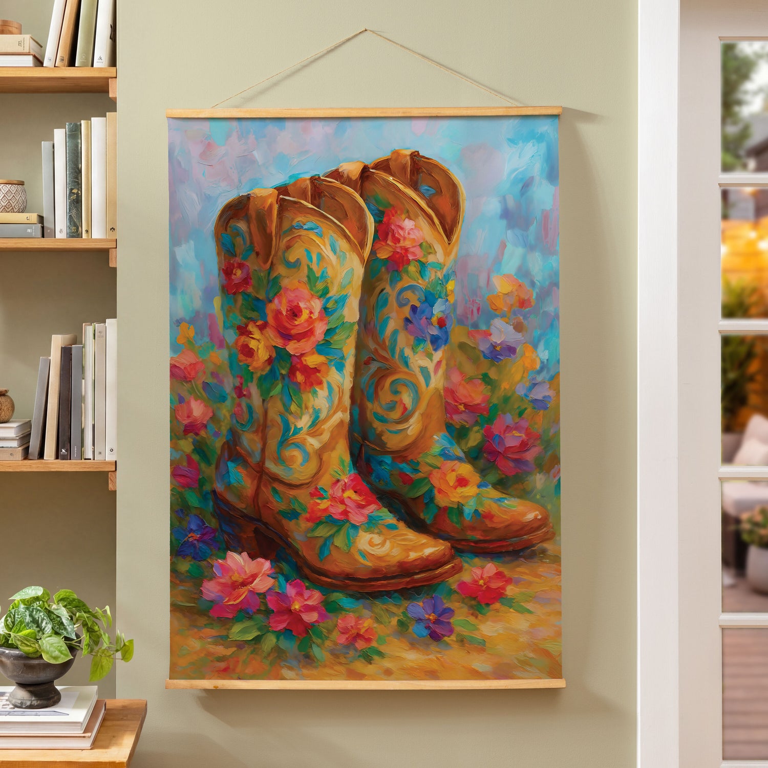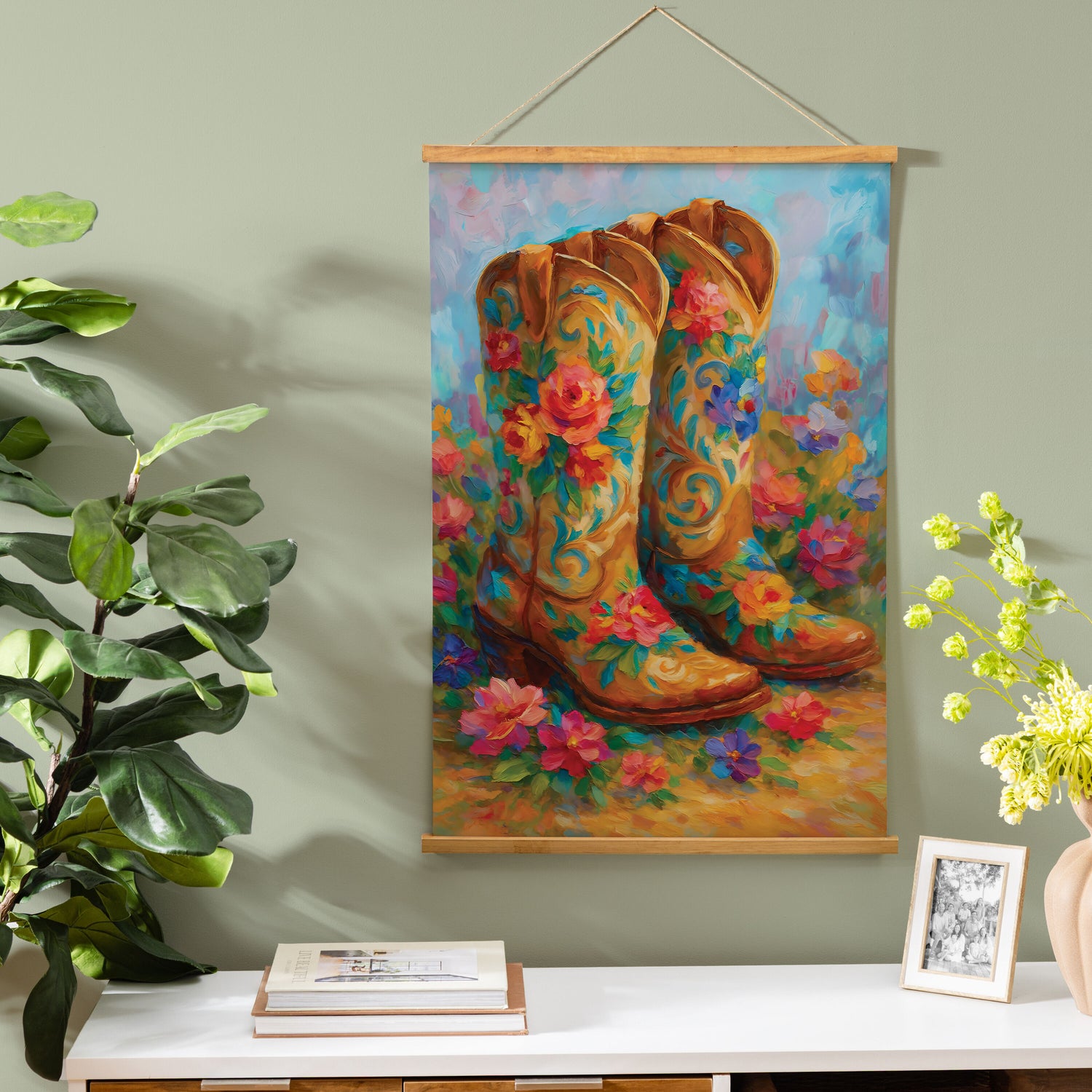 Hillside Pasture Indoor Wall Décor Canvas Tapestry, Floral Boots