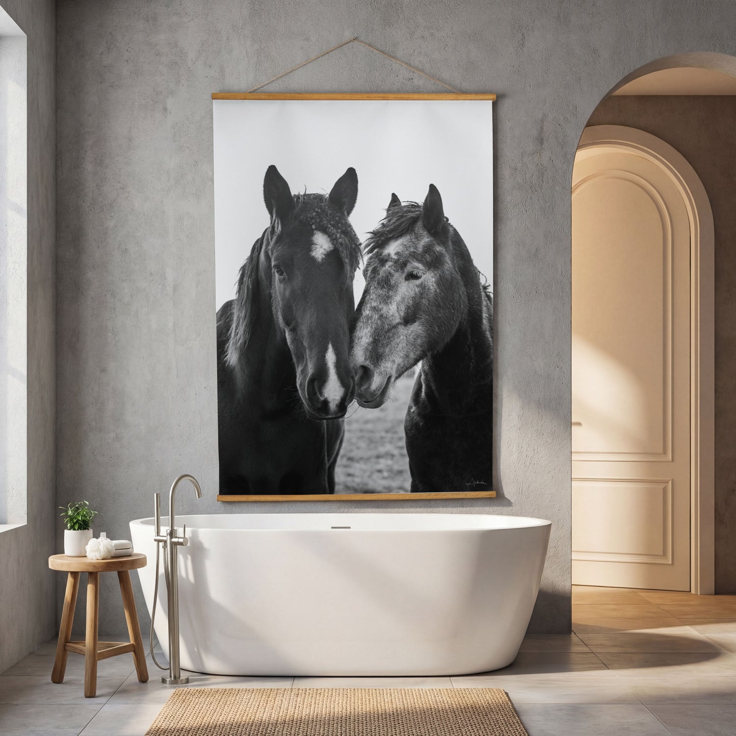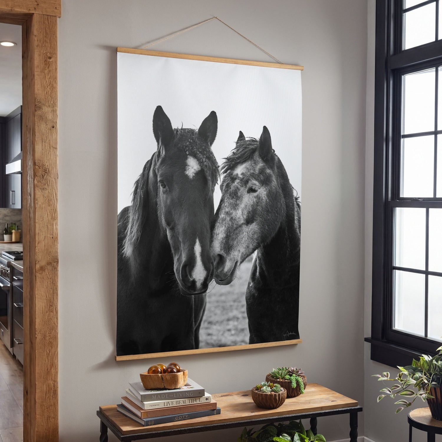Evoking the quiet beauty of open country, this Hillside Pasture Indoor Wall Décor Canvas Tapestry, Horses brings movement and serenity to interiors through a textile-forward presentation that feels both artful and inviting. The equestrian scene set against rolling hills is rendered on canvas, lending the tapestry a natural texture that softens spaces while creating a refined focal point for living rooms, bedrooms, entryways, and offices. Designed for indoor display, this versatile piece pairs effortlessly with rustic, farmhouse, lodge, and contemporary home decor, delivering standout wall decor that complements nature-inspired assortments and encourages a calm, collected mood.