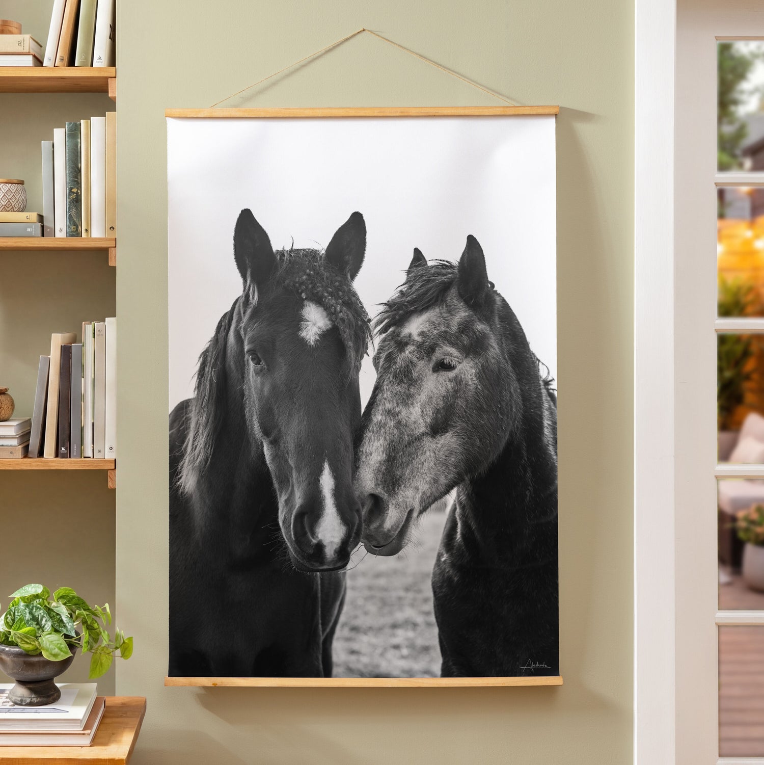 - Bring the quiet charm of the countryside indoors with this Hillside Pasture Canvas Tapestry, a vintage-style wall art piece that captures horses roaming a pastoral farm landscape in a warm, multicolored palette suited to everyday home decor. Printed with quality ink on cotton canvas and complemented by wood framing options, this versatile design offers a crafted look and comfortable scale for living rooms, bedrooms, and entryways. Designed for indoor wall hanging and easy upkeep, it wipes clean with a soft, dry cloth for lasting beauty season after season.