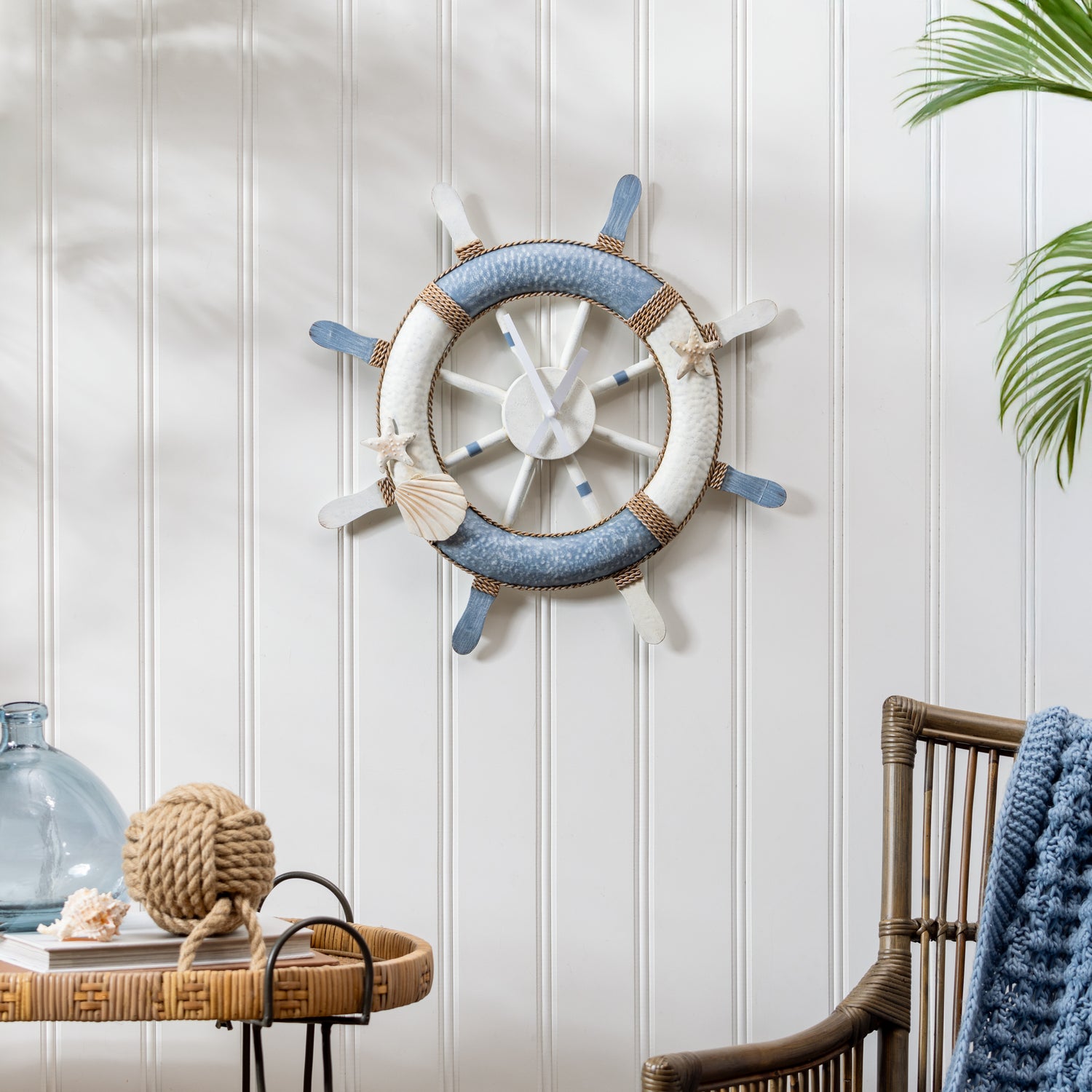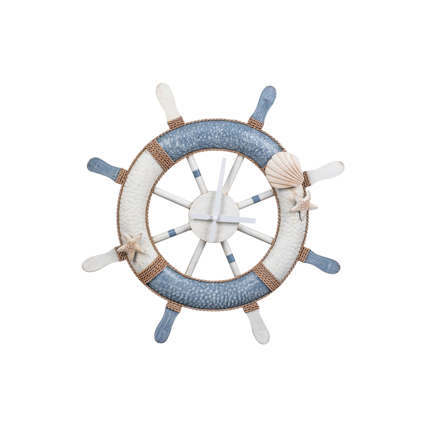 Blue Coastal Outdoor Wall Decor, Metal, Nautical Clock, 21" L x 21" H