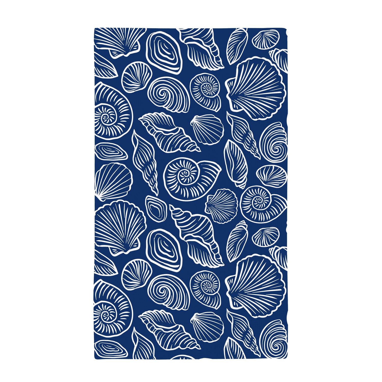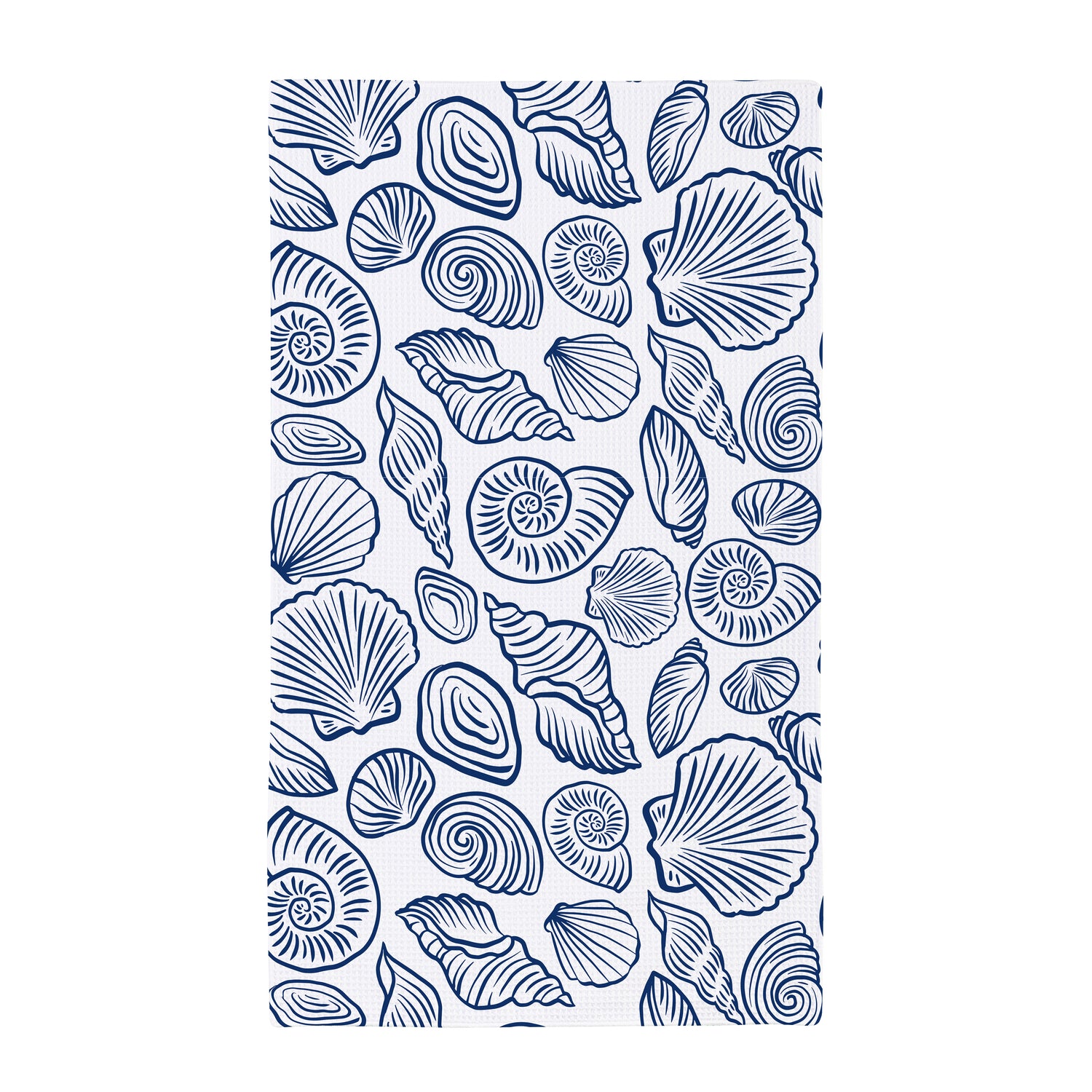 Blue Coastal Kitchen Towel Quick Dry Waffle Weave Double-Sided, Shells, 30"L x 18"W