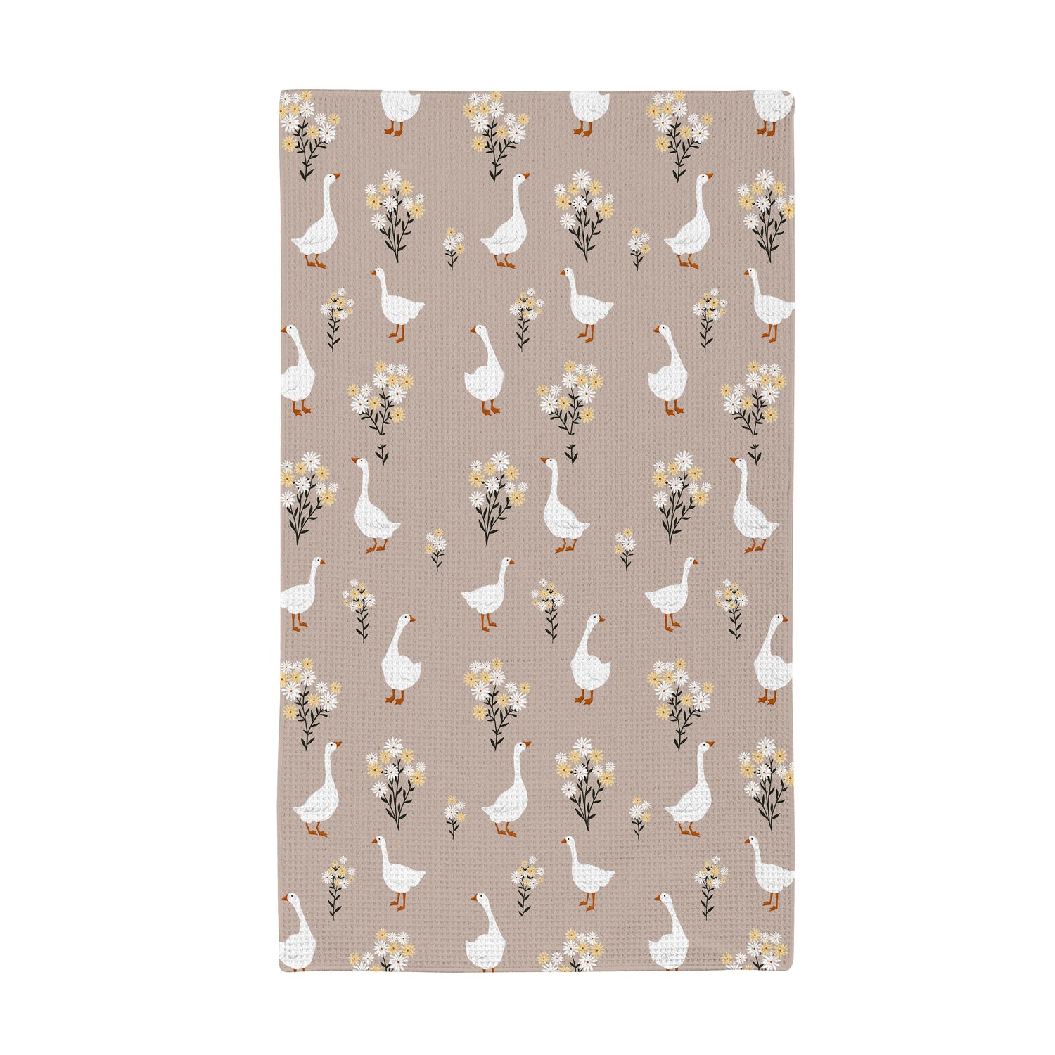 Hillside Pasture Kitchen Towel Quick Dry Waffle Weave Double-Sided, Floral Goose, 30"L x 18"W