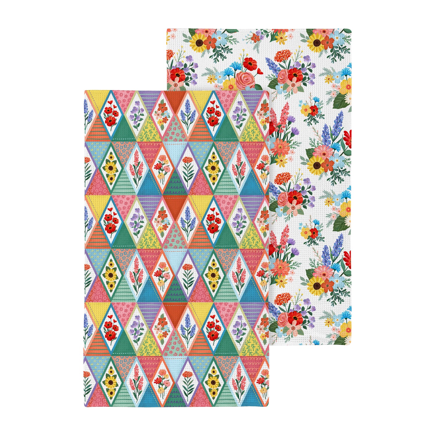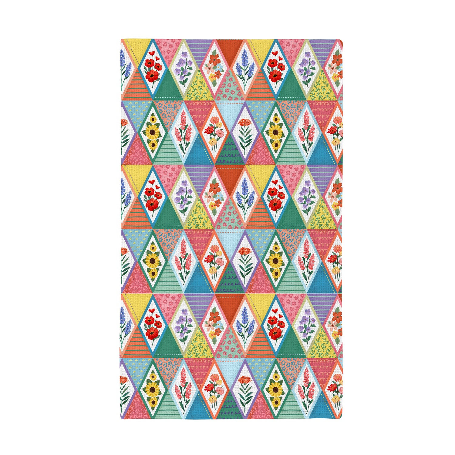 Thoughtfully designed for everyday tasks and decorative appeal, this Cottage Garden Kitchen Towel Quick Dry Waffle Weave Double-Sided pairs high-function performance with versatile style. The textured waffle weave promotes fast drying and reliable absorbency, while the reversible prints—colorful diamonds on one side and a fresh floral on the other—offer two coordinated looks to suit cottage garden, floral, and geometric themes. At 30 inches long by 18 inches wide, it delivers ample coverage for drying dishes and hands and adds a polished accent when draped over an oven handle or hook, bringing practical charm to kitchen assortments and giftable houseware displays.