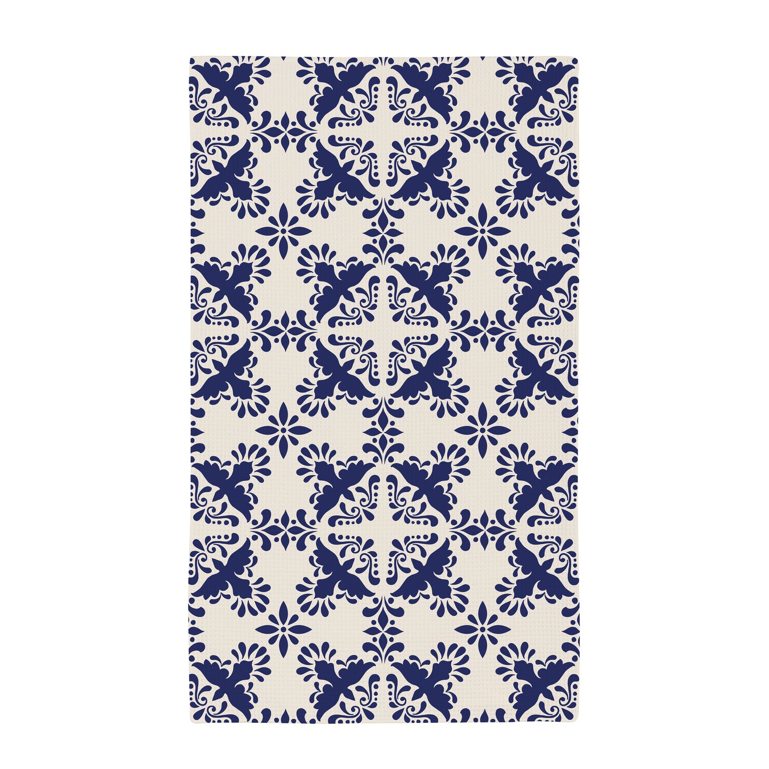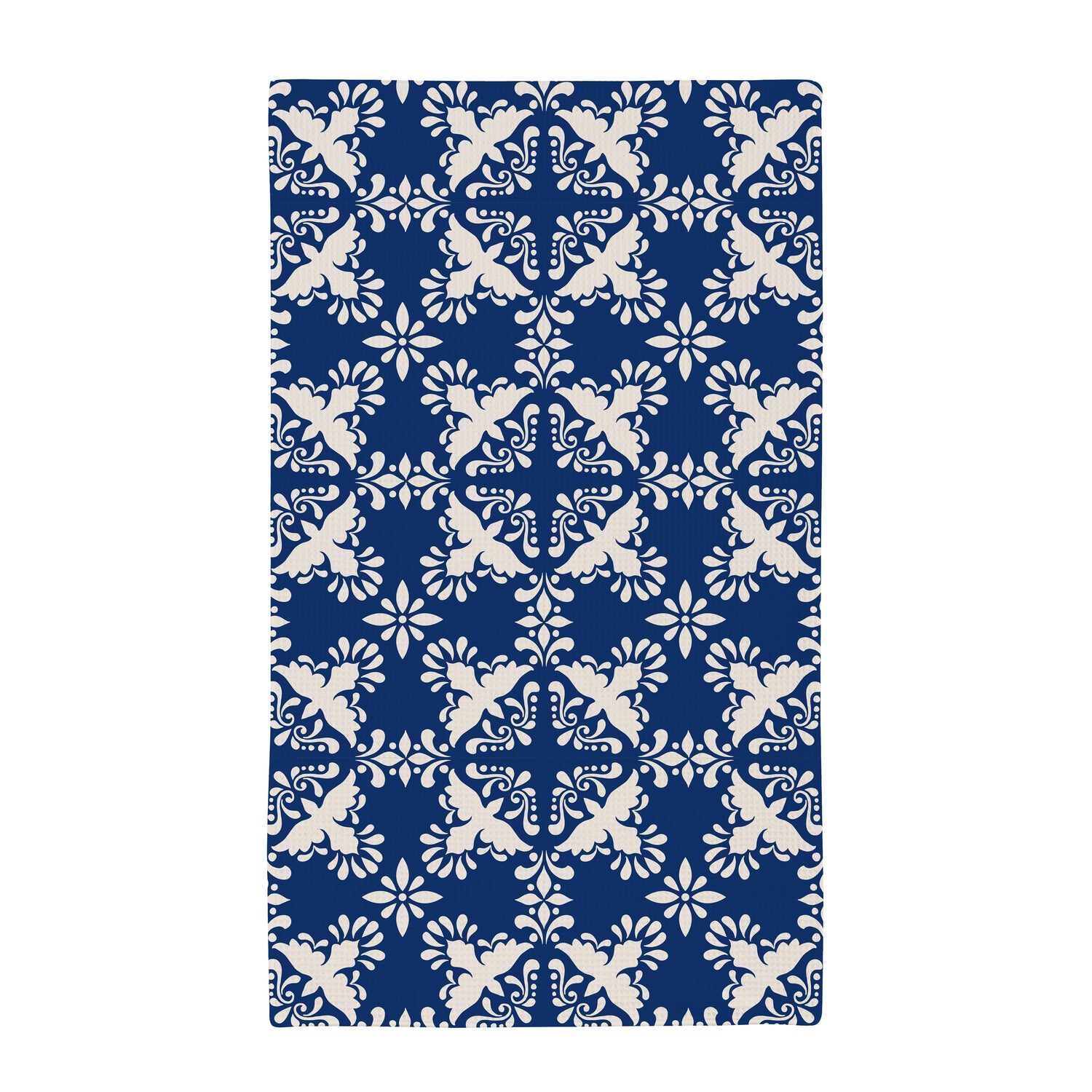 Blue Coastal Kitchen Towel Quick Dry Waffle Weave Double-Sided, Clay Birds, 30"L x 18"W
