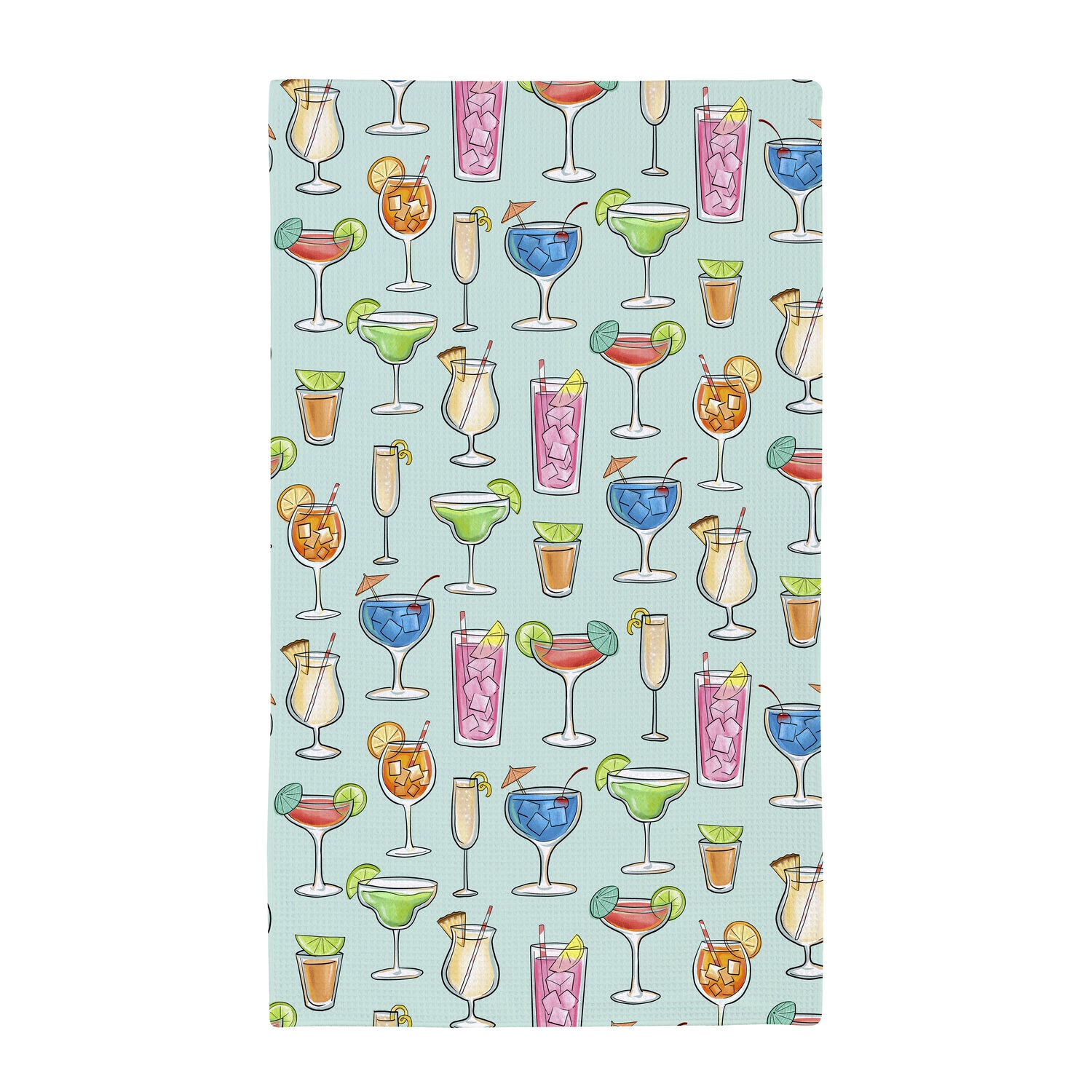 Kitchen Towel Quick Dry Waffle Weave Double-Sided, Cocktails, 30"L x 18"W