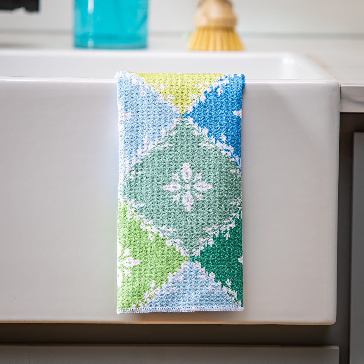 - With a vibrant design, this kitchen towel will look perfect in the kitchen for spring and beyond.