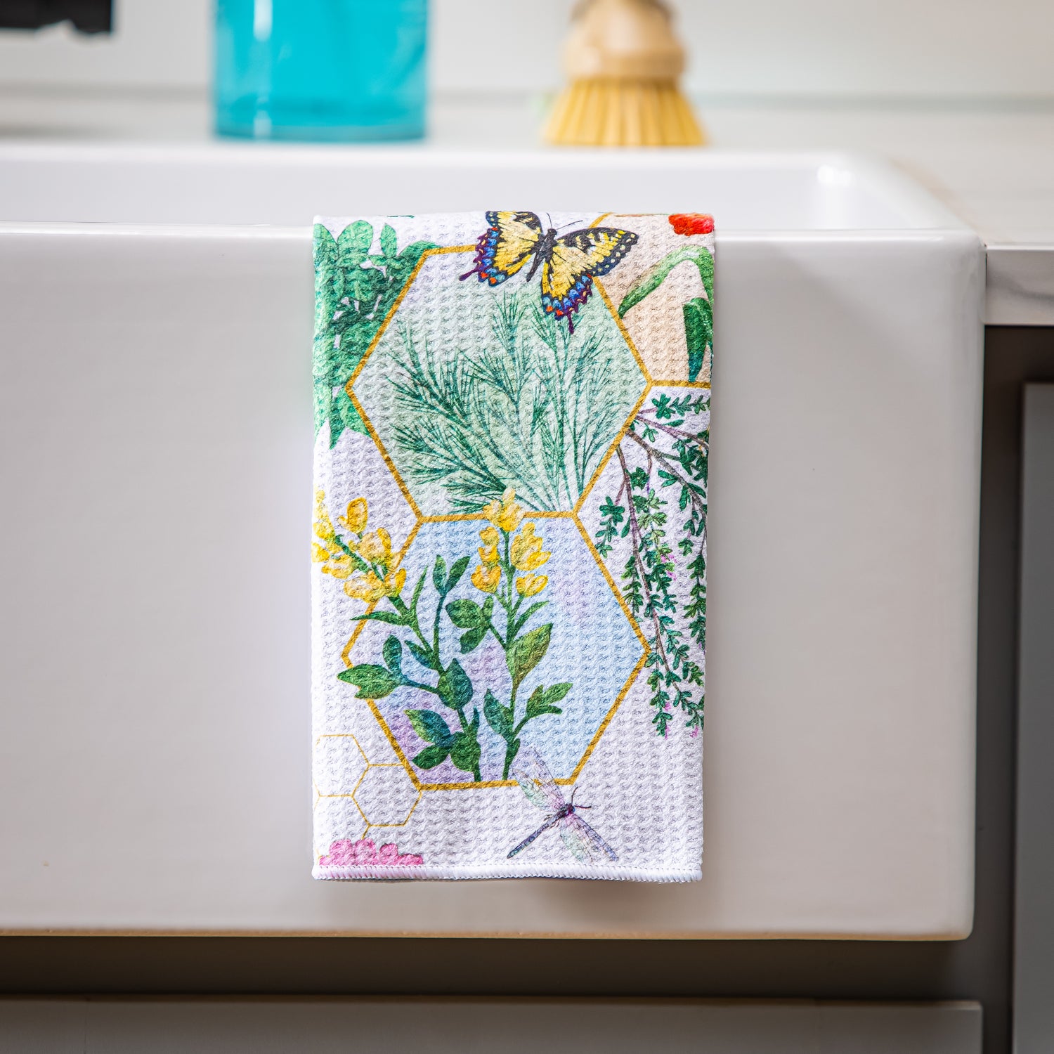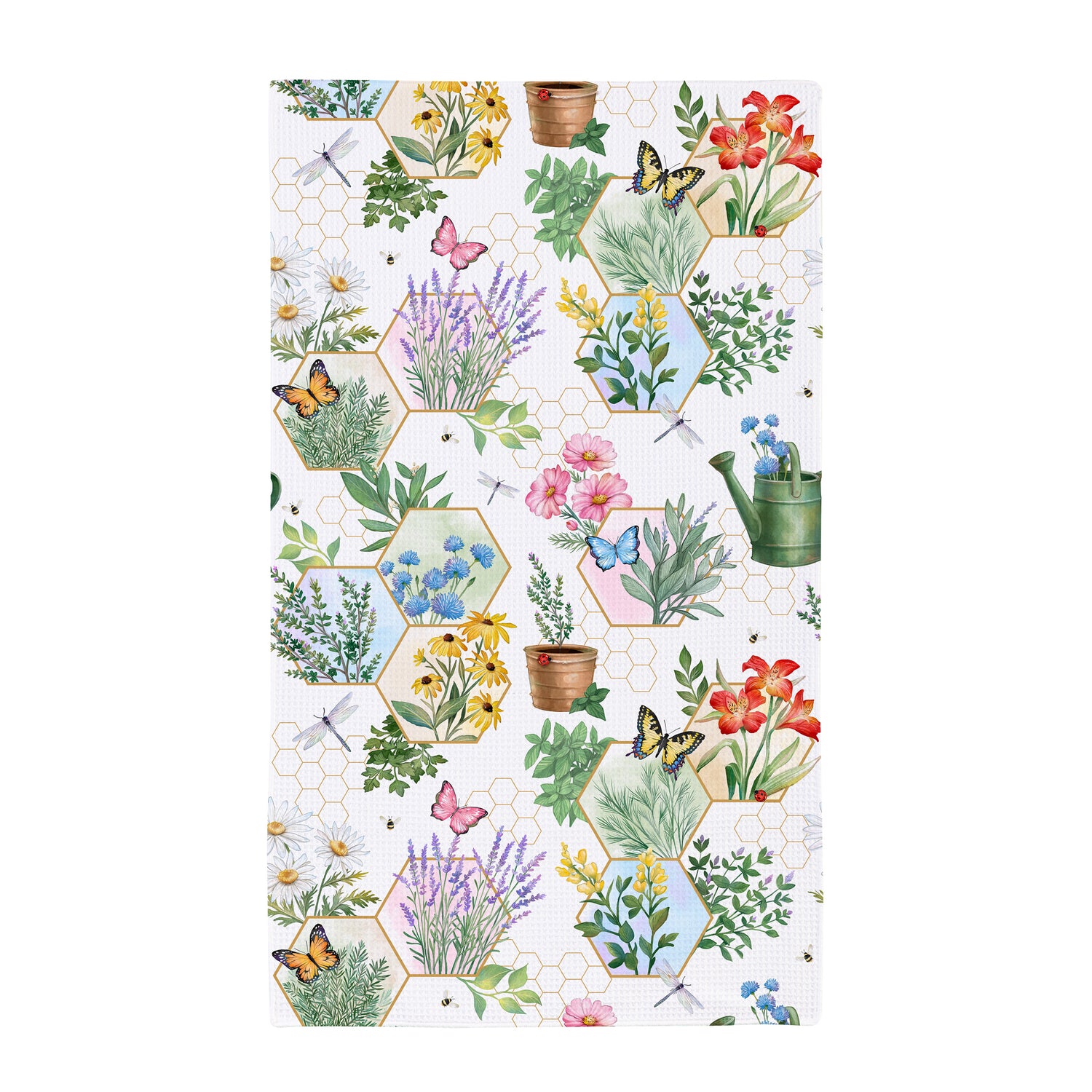 Pollinator Garden Kitchen Towel Quick Dry Waffle Weave Double-Sided, Gardening, 30"L x 18"W