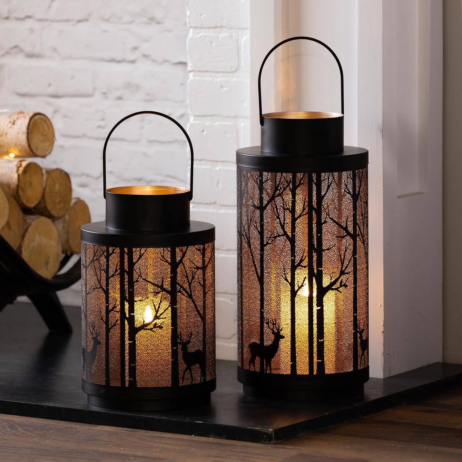 • Laser-Cut Metal Winter Woodland Lantern, Large