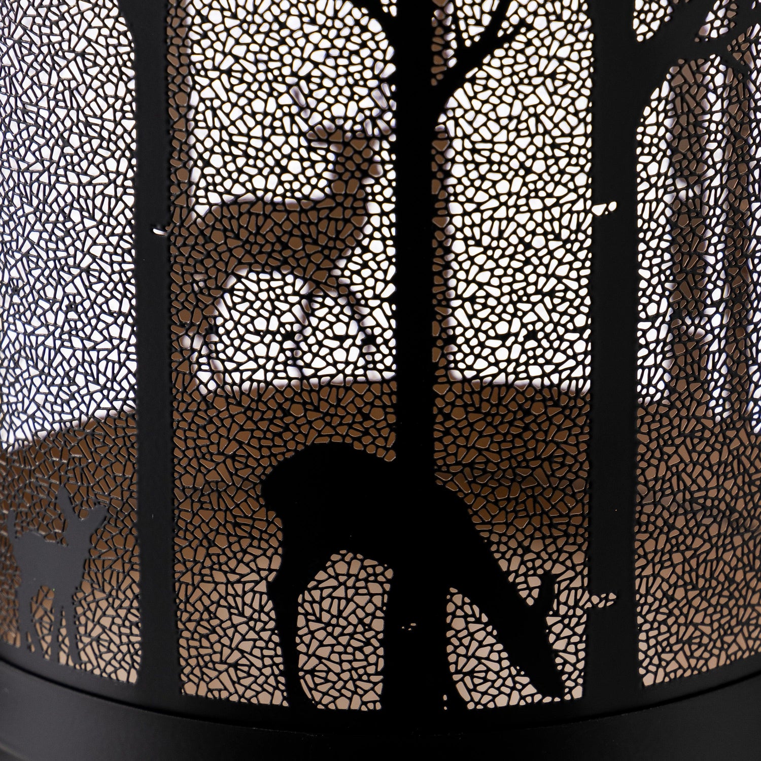 This Laser-cut metal winter woodland luminary adds an inviting glow to your home during the holidays and throughout winter. The winter woodland scene with deer and winter trees makes a statement with the sleek laser-cut lines, especially when illuminated. The gold paint on the inside elevates the warm light from a real or faux candle (not included). Lantern also looks magical when lit with string lights.