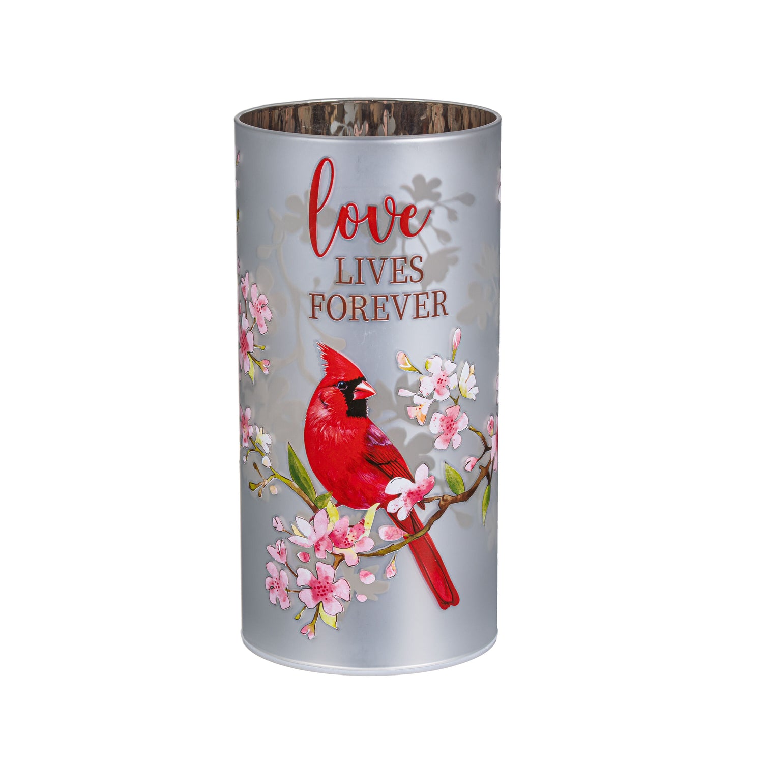 Memorial LED Table Decor Glass Lasercut Cardinal "Love Lives Forever, 8"H