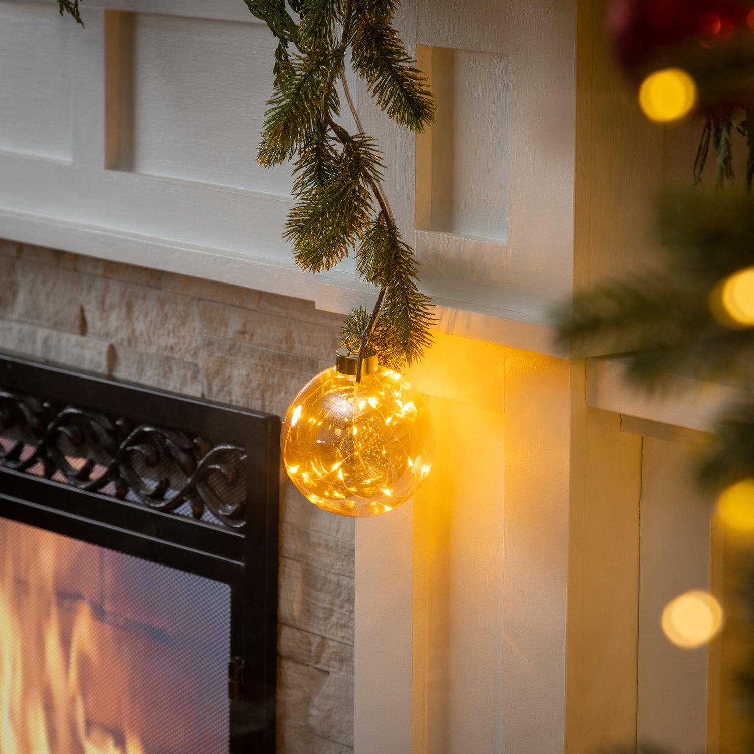 Micro LED Transparent Glass Ball Indoor Outdoor Decorative Hanging Light, Classic Warm Light