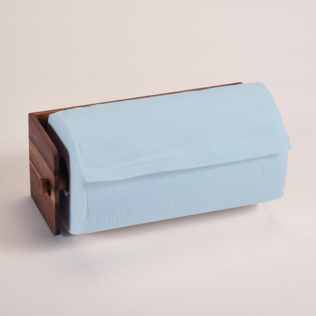 - With its sturdy construction and simple design, this acacia wood holder keeps your paper towels easily accessible and neatly organized.