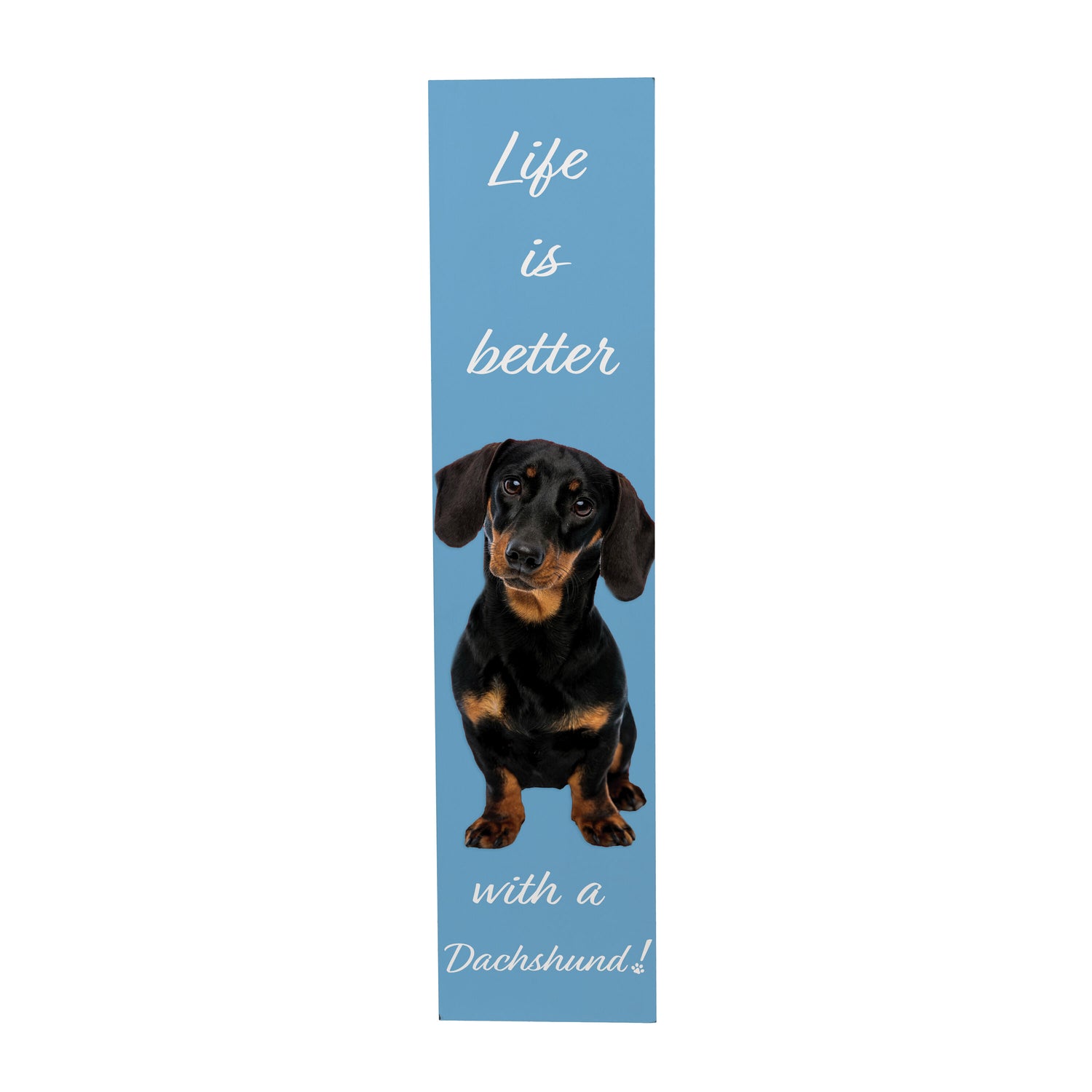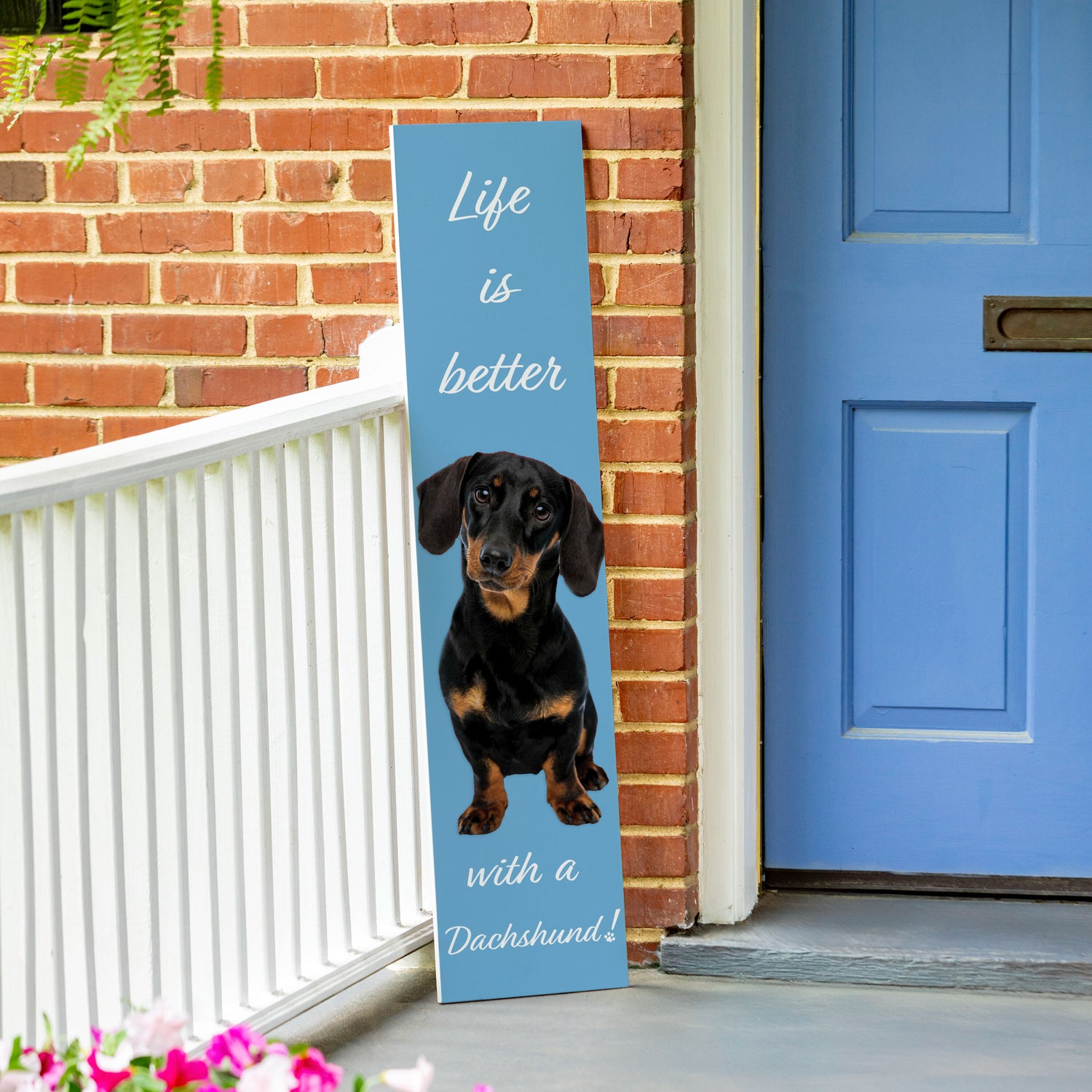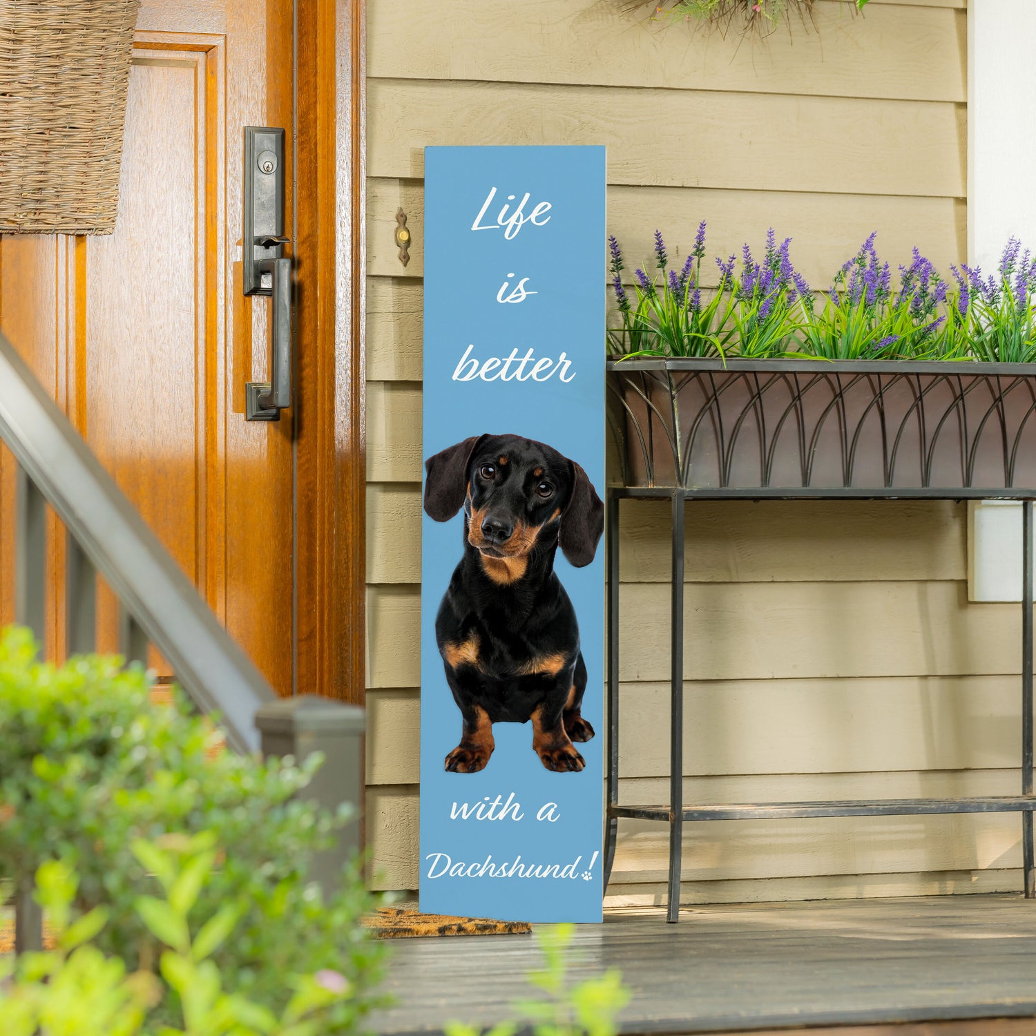 • 46-inch porch leaner featuring a Dachshund theme that delivers a friendly, pet-inspired welcome