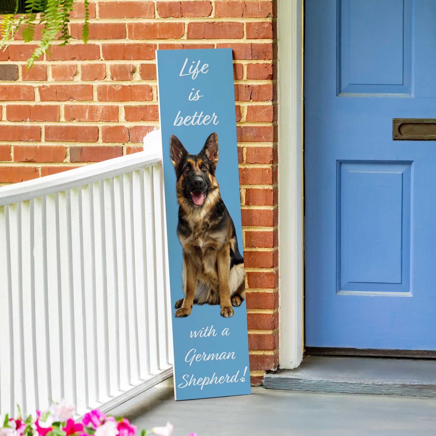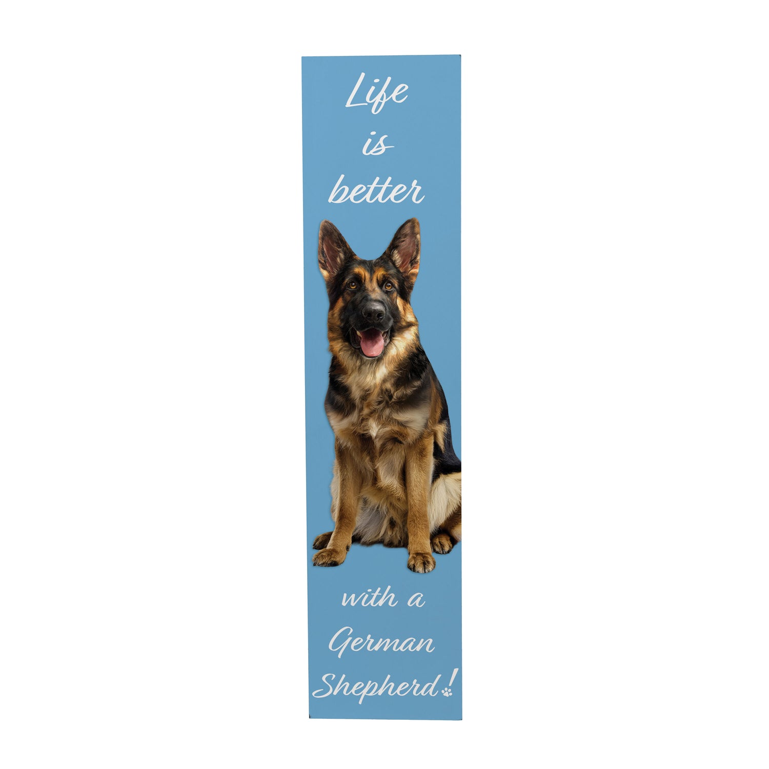 • 46-inch dog porch leaner featuring a proud German Shepherd motif to greet guests