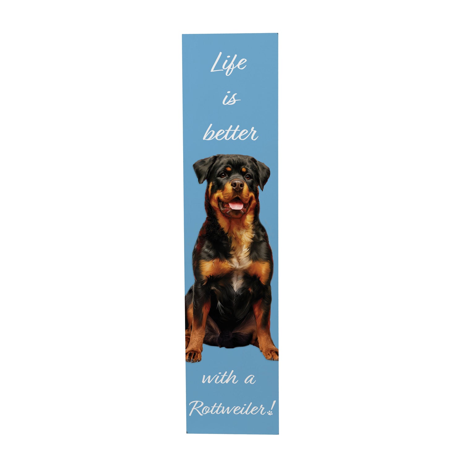 - 46-inch dog porch leaner with a German Shepherd theme for breed-focused styling