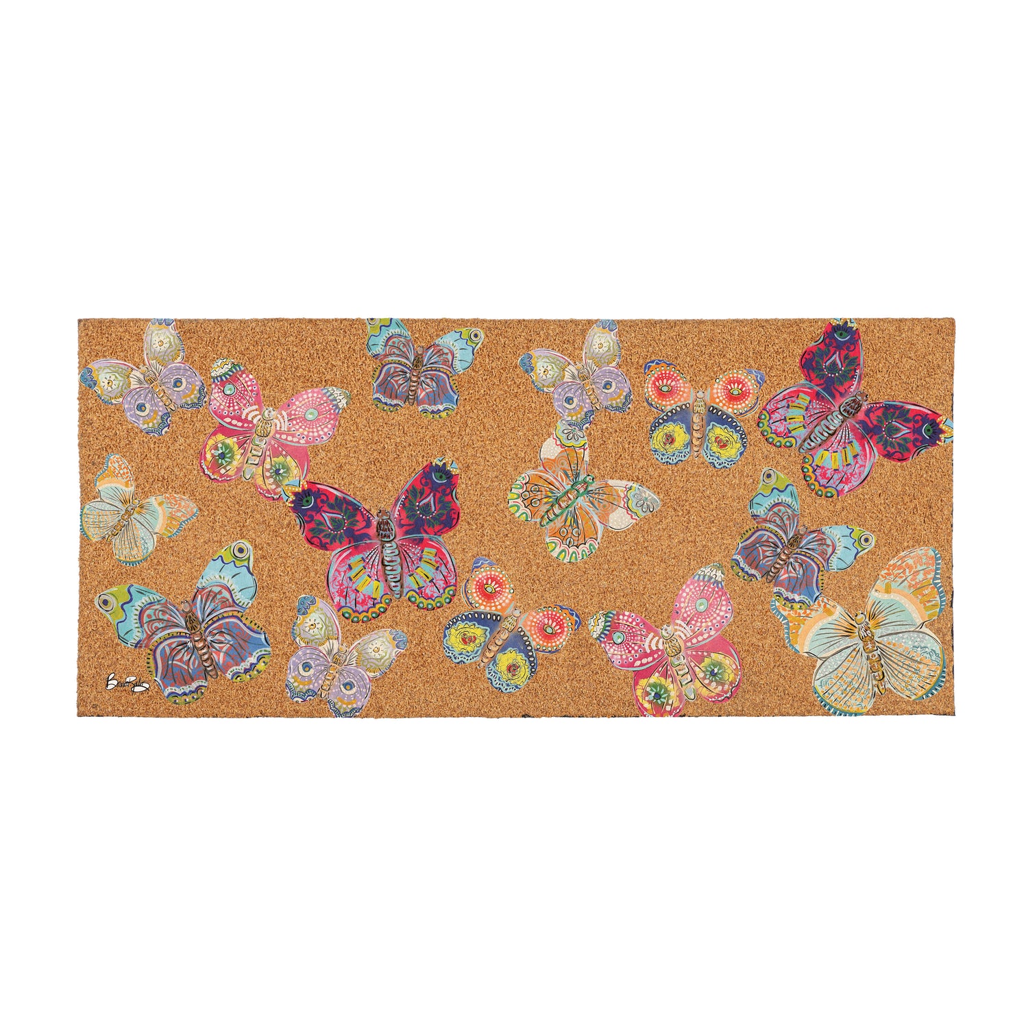 Seaside Retreat Flocked Coir Sassafras Switch Mat, Butterflies, 22"x10"