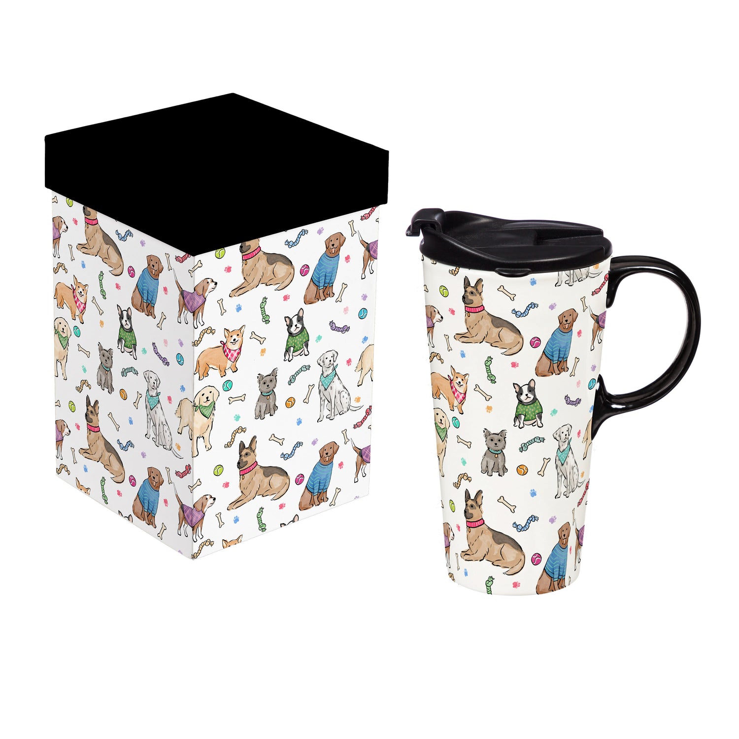 - Cozy up your commute with this Hillside Pasture Pet Ceramic Perfect Cup, a 17 oz ceramic travel mug that pairs everyday function with Holiday-friendly charm. Showcasing playful winter dogs in scarves, this heat-resistant stoneware mug features a sturdy handle and a fitted, double-lip plastic lid with three silicone rings that seat into molded grooves for a secure, sip-ready seal that helps reduce leaks and splashes on the go. Designed for real-life use, it fits most vehicle cup holders, goes top-rack in the dishwasher for easy cleanup, and is microwave safe for quick warm-ups. Packaged in a coordinating gift box, it’s a ready-to-share dog lovers gift that brings seasonal delight to morning coffee, afternoon tea, and everything in between.