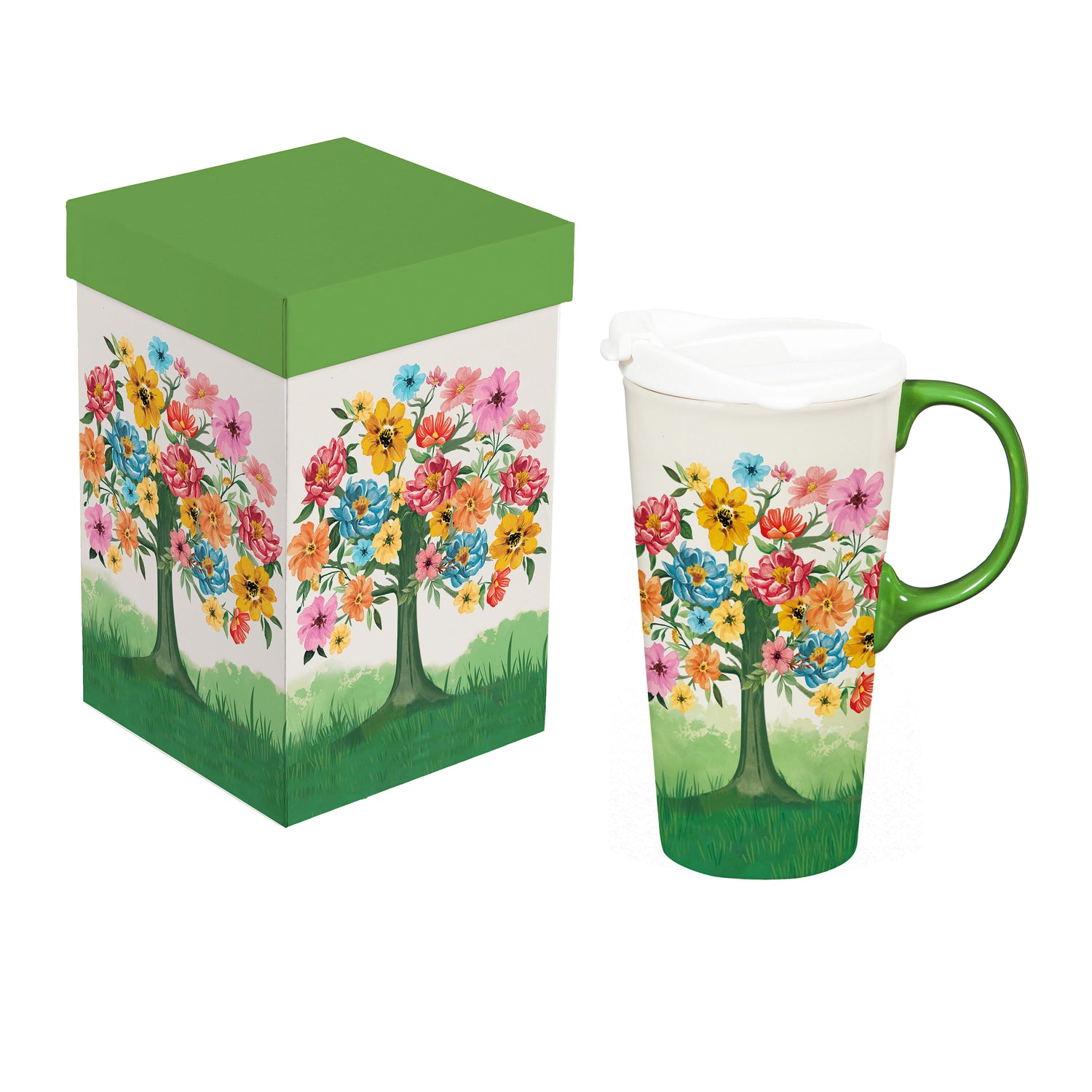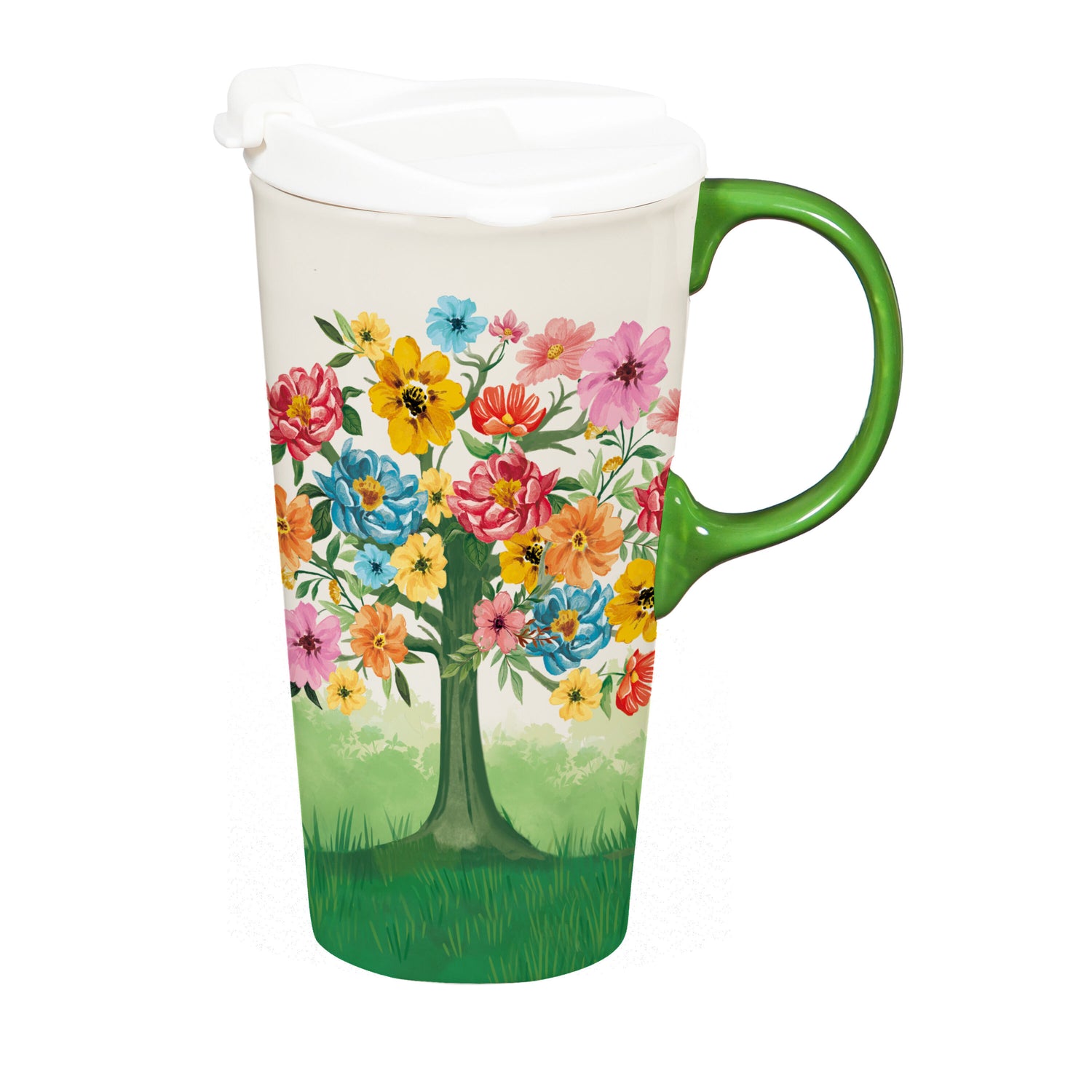 Cottage Garden Travel Cup Ceramic Perfect Cup, Floral Tree, 17oz, Gift Box