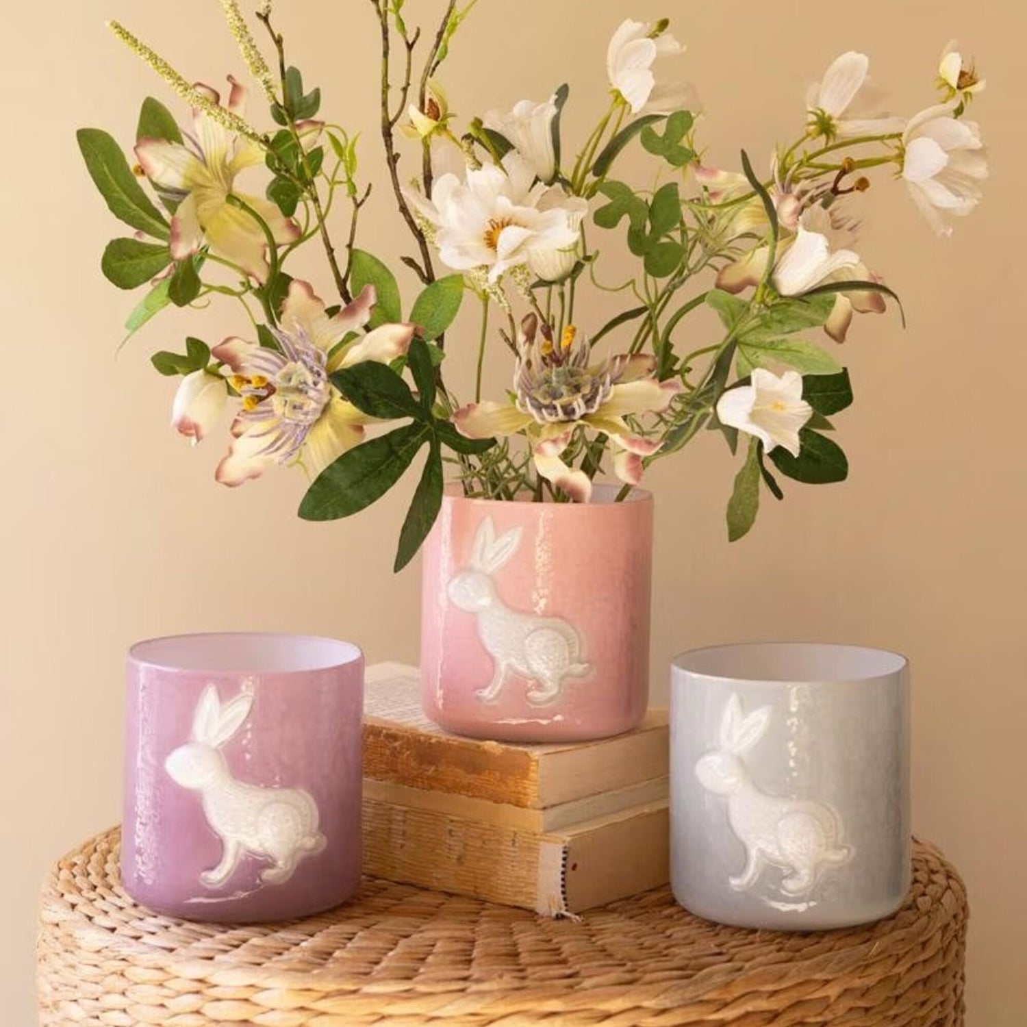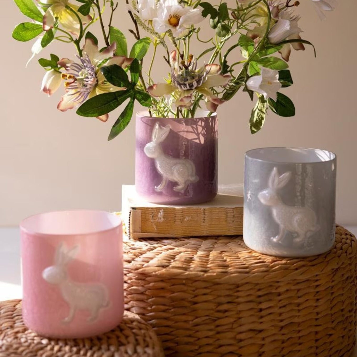 Sweet, whimsical touches for spring or year-round cheer. These colored glass bunny vases feature charming silhouettes and soft translucent tones that glow beautifully in sunlight. Perfect for single blooms, small stems, or displaying as playful decorative accents on shelves and windowsills.