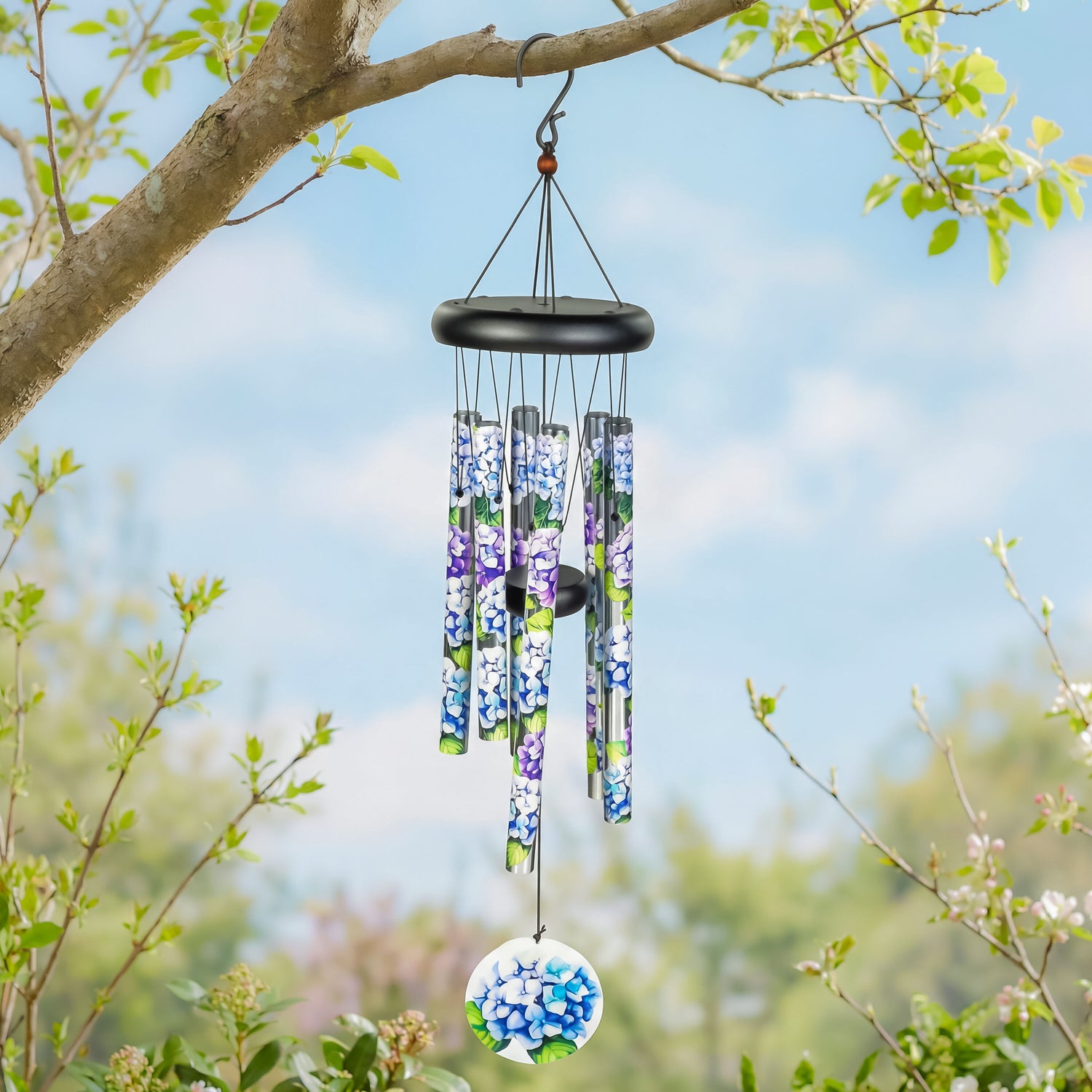 The Avria Tuned Wind Chime pairs refined acoustics with botanical artistry, showcasing a printed Hydrangeas floral motif that brings fresh color and charm to porches, patios, and garden nooks. Thoughtfully tuned for clear, soothing resonance, this 27-inch wind chime creates a gentle soundscape that complements outdoor living, while its artful print offers a standout decorative focal point within garden décor assortments. Sized for versatile placement yet substantial enough to draw the eye, it’s an easy add-on for outdoor refreshes and a thoughtful gift for gardeners, delivering both visual interest and inviting tone to any setting.