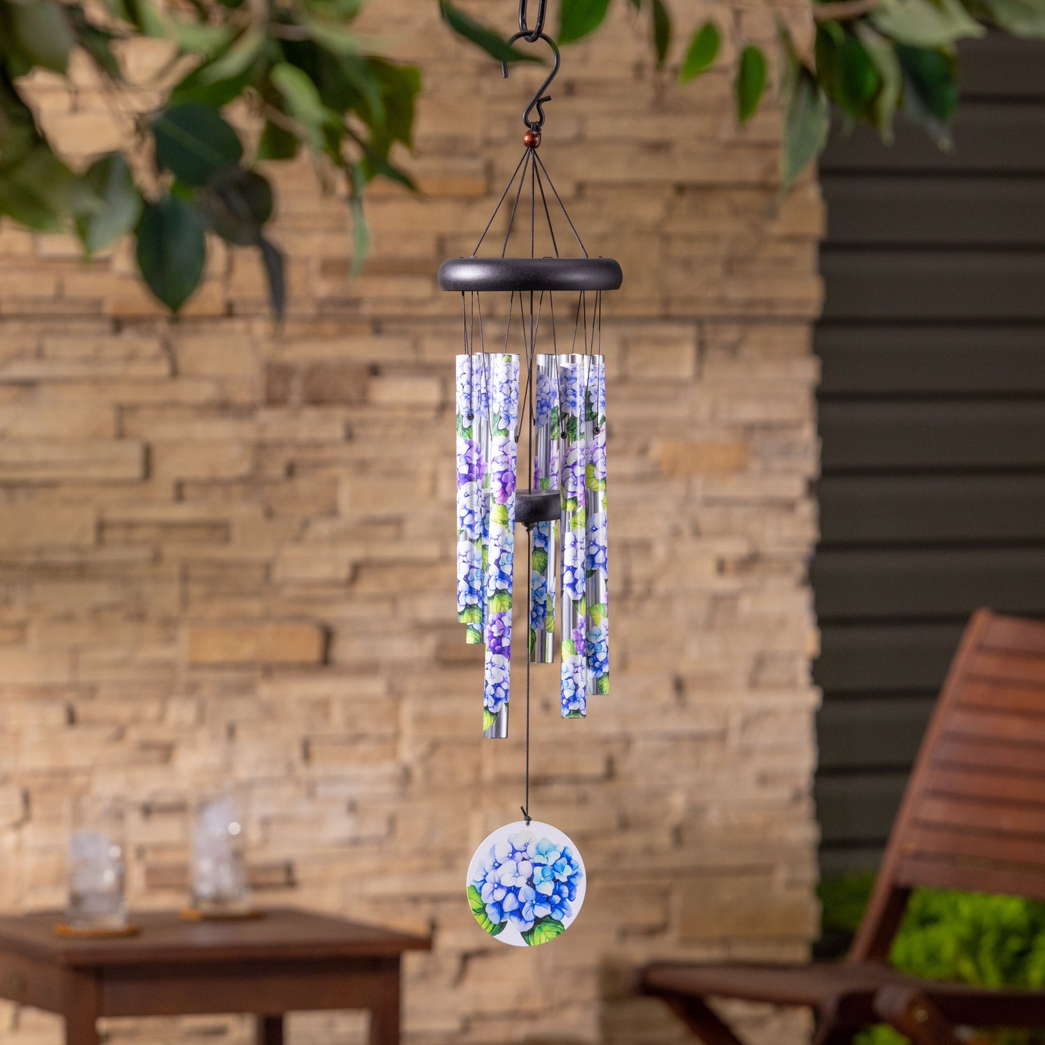 Avria Wind Chime, Tuned Wind Chime, Printed Hydrangeas, 27" H