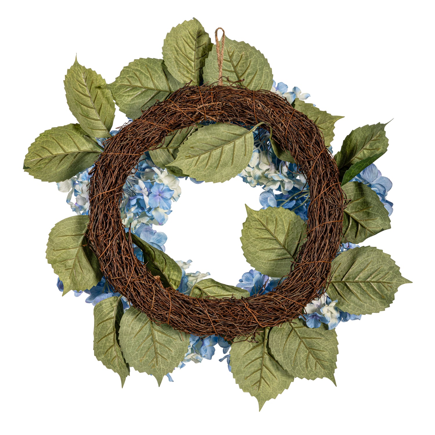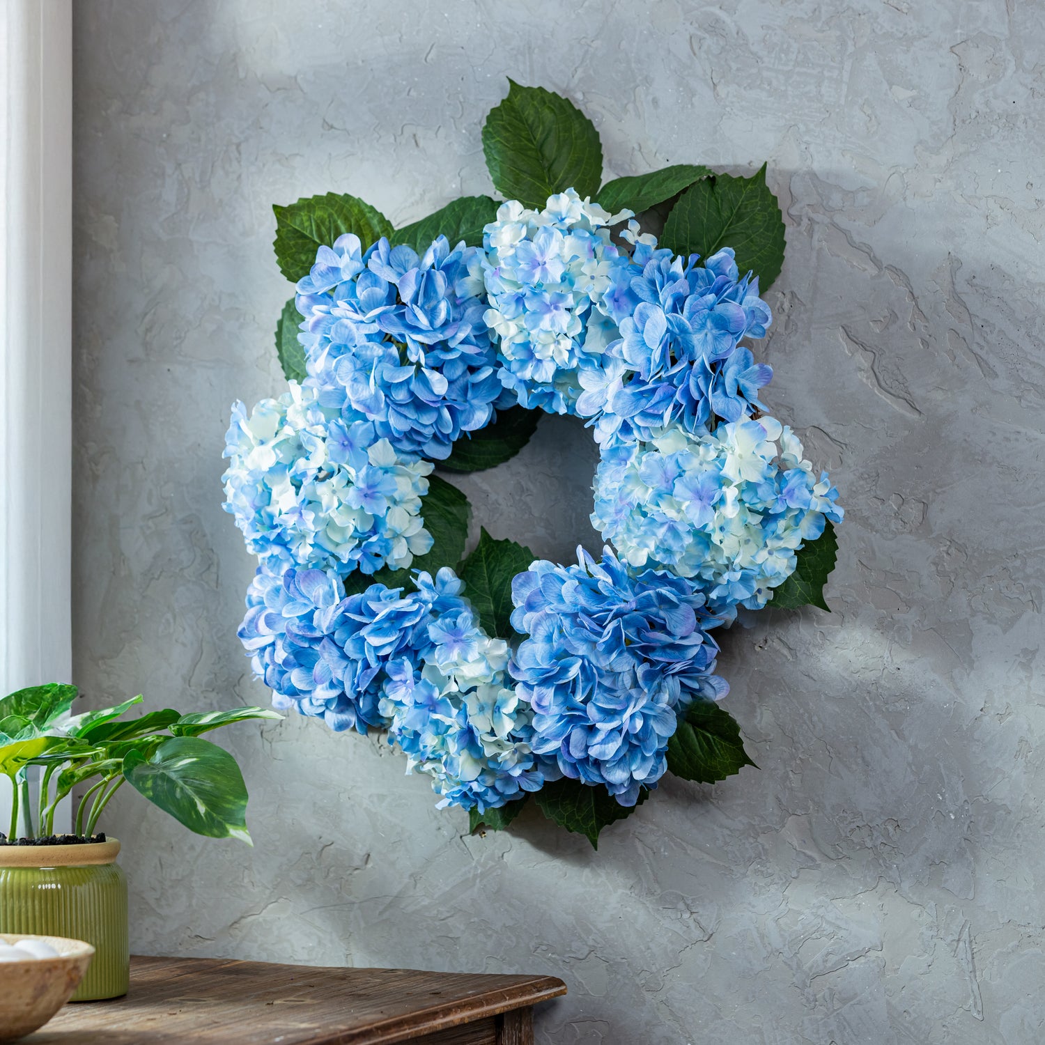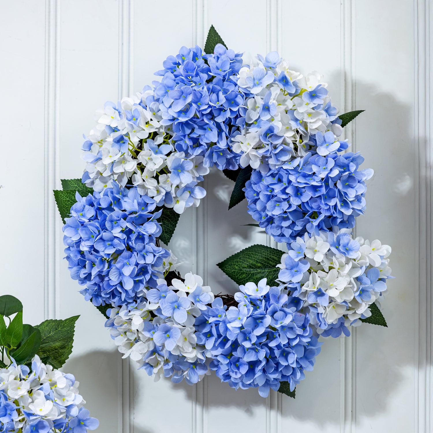 VivaStyle Artificials, Artificial Blue & White Hydrangea Wreath, 16"H