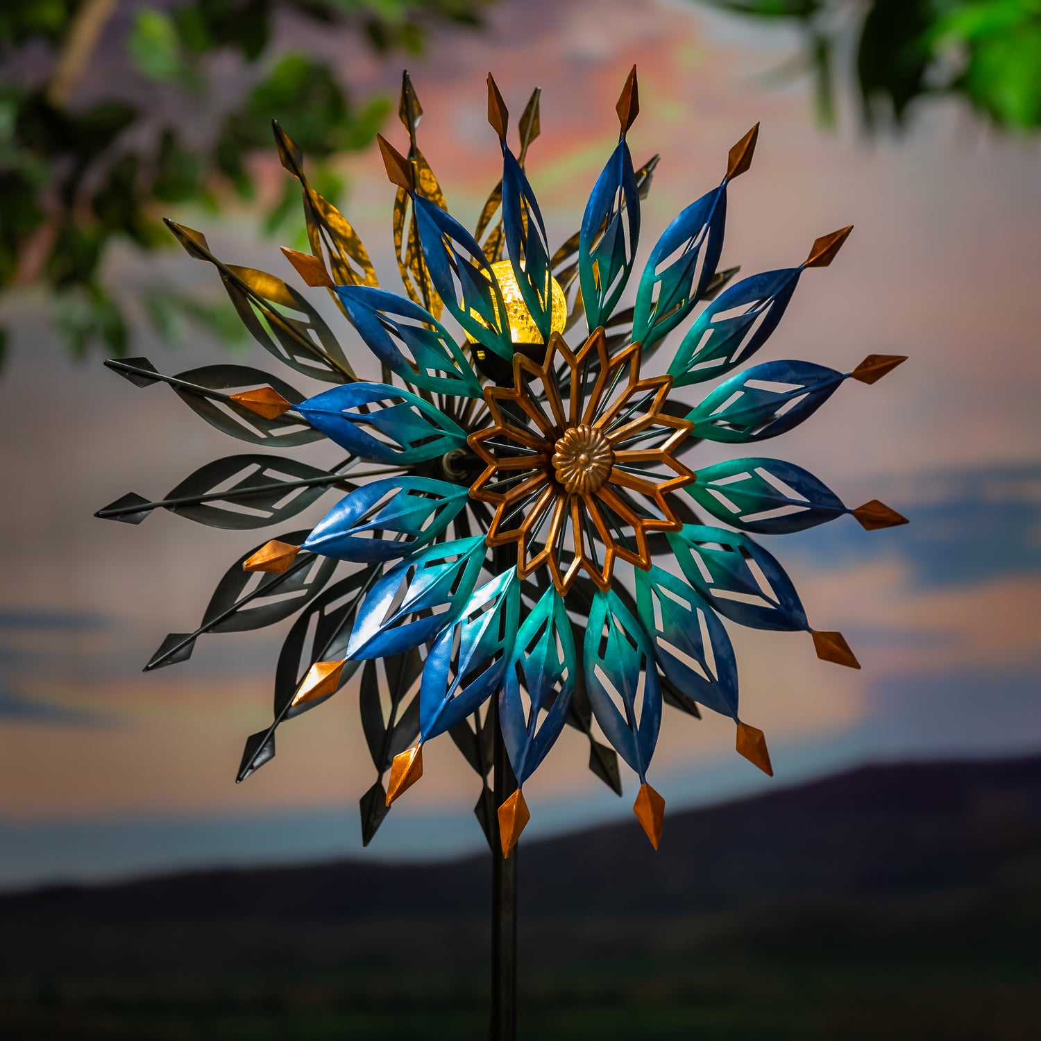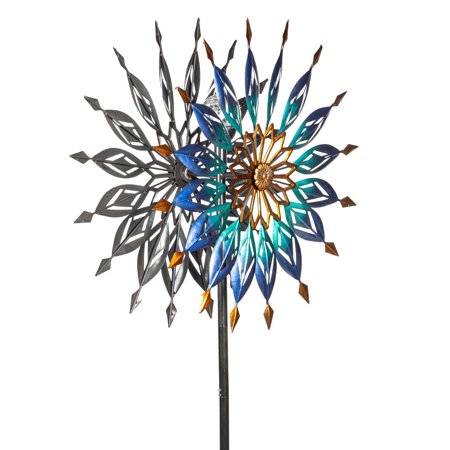 Create a mesmerizing display in any outdoor space, garden, or landscaping with this statement wind spinner. This spinner is designed to move when the wind blows; beautifully spinning in a way that will capture everyone's attention. Sit back after a long day and relax on the front porch while watching it come to life in the gentle breeze. Crafted from outdoor safe and weather-resistant materials, it's designed to endure the elements and last season after season.