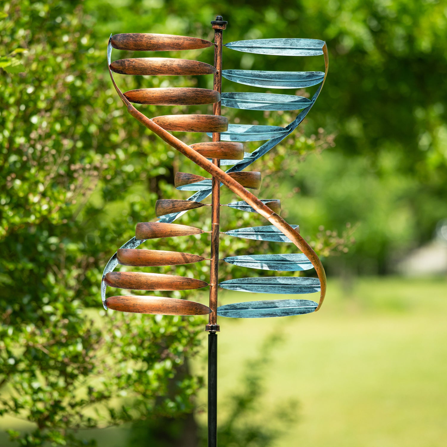 Create a mesmerizing display in any outdoor space, garden, or landscaping with this statement wind spinner. This spinner is designed to move when the wind blows; beautifully spinning in a way that will capture everyone's attention. Sit back after a long day and relax on the front porch while watching it come to life in the gentle breeze. Crafted from outdoor safe and weather-resistant materials, it's designed to endure the elements and last season after season.