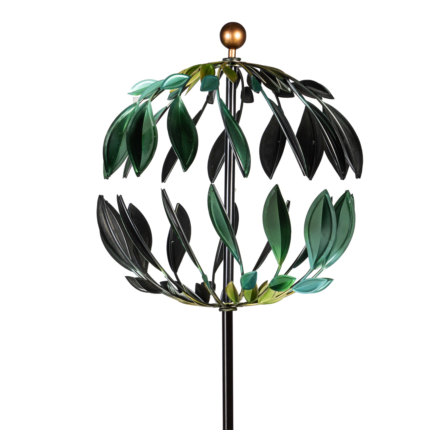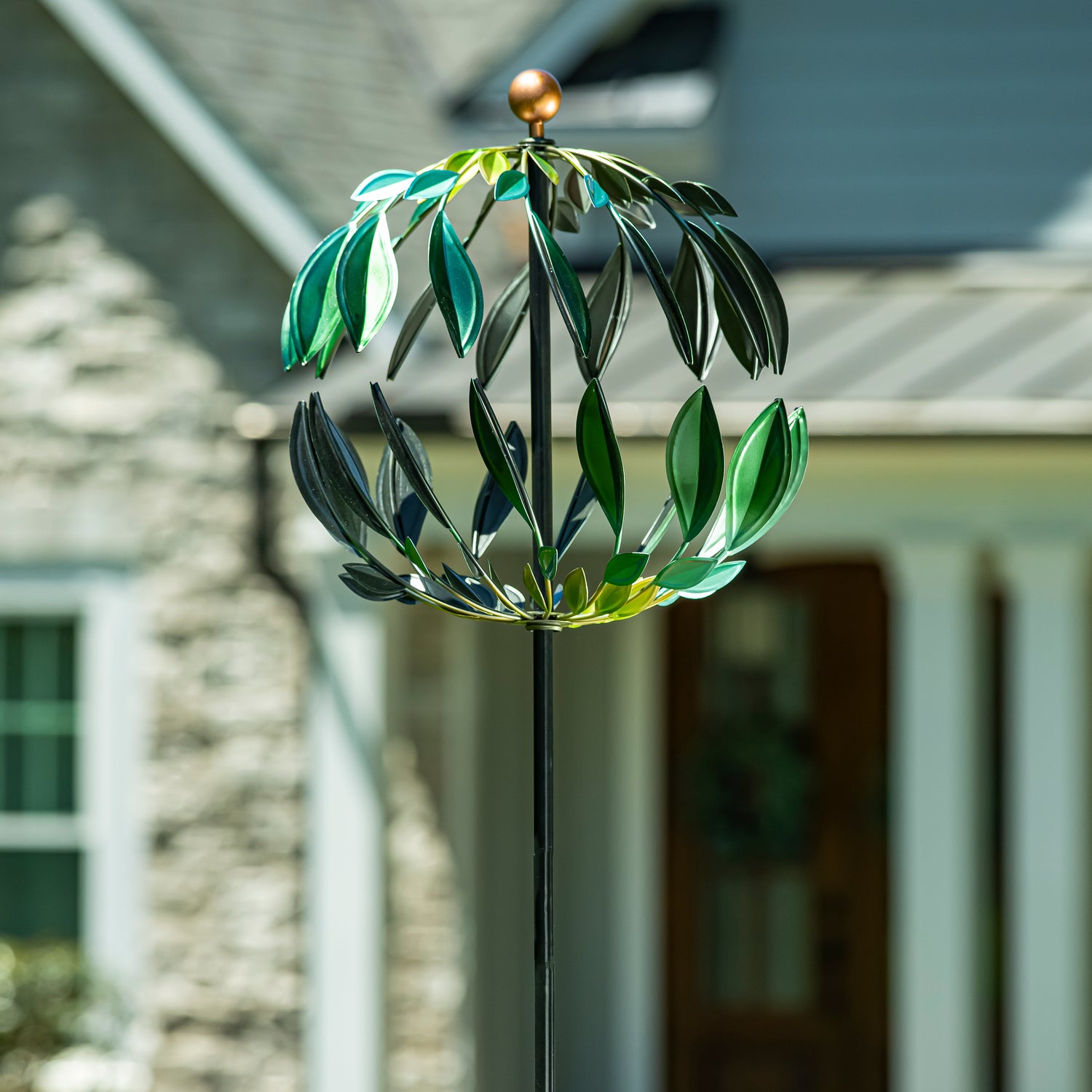 Metal Wind Spinner, Blue and Green Leaves, 74"H
