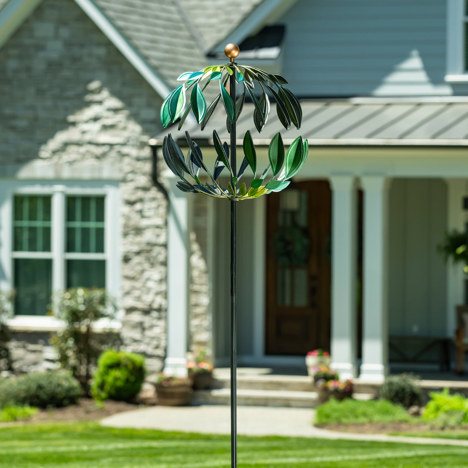Create a mesmerizing display in any outdoor space, garden, or landscaping with this statement wind spinner. This spinner is designed to move when the wind blows; beautifully spinning in a way that will capture everyone's attention. Sit back after a long day and relax on the front porch while watching it come to life in the gentle breeze. Crafted from outdoor safe and weather-resistant materials, it's designed to endure the elements and last season after season.